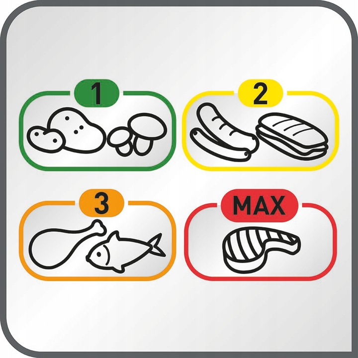 SuperGrill Timer to urządzenie wyposażone w 4-pozycyjny termostat. Teraz grillowanie z rodziną i przyjaciółmi staje się jeszcze prostsze i przyjemniejsze! Możesz przyrządzać różne rodzaje składników na każdą okazję. Dzięki trybowi Max z łatwością zarumienisz mięso, jednocześnie zachowując jego soczystość.