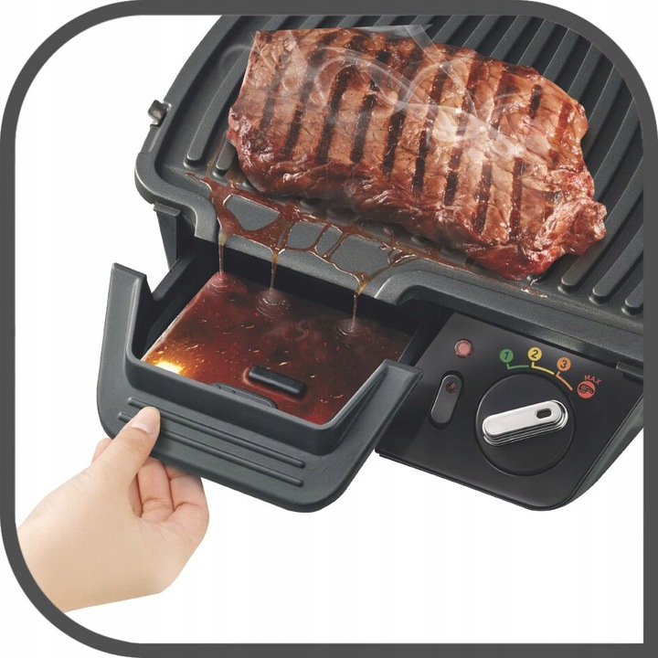 Urządzenie posiada tryb Max służący do mocnego obsmażania mięsa. Dzięki niemu w krótkim czasie idealnie zgrillujesz nawet grube kawałki.