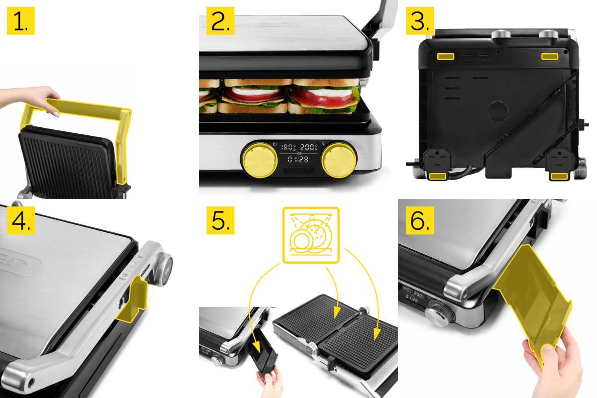 ▶ Ciesz się grillowaniem w towarzystwie znajomych - połóż ulubione składniki na obu płytach i grilluj razem z najbliższymi!