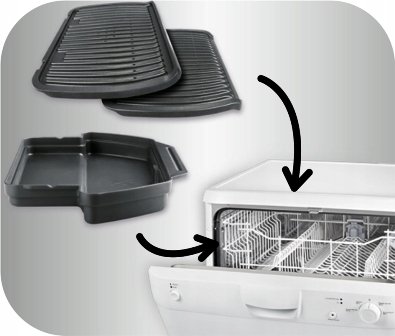 | Funkcje grilla: | odprowadzanie tłuszczu, lampka kontrolna, możliwość mycia w zmywarce, nieprzywierająca powłoka, programy automatyczne |