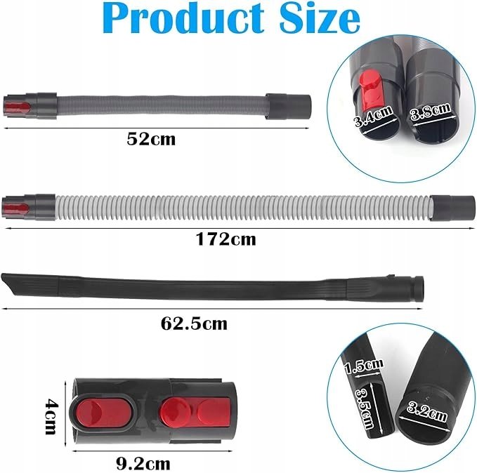 - Kompatybilny z odkurzaczami Dyson V7 V8 V10 V11 V15, wąż odkurzacza jest również doskonale dostosowany do głowic czyszczących, takich jak ssawki do dywanów, węże do czyszczenia szczelin, narzędzia szczelinowe z miękkim włosiem, mini miękkie szczotki do kurzu itp.