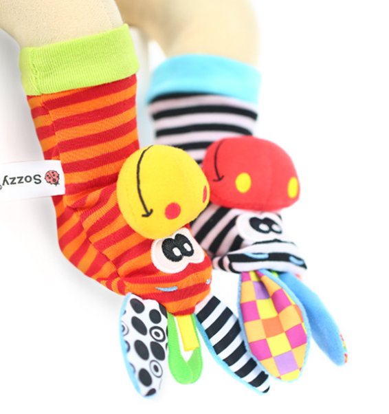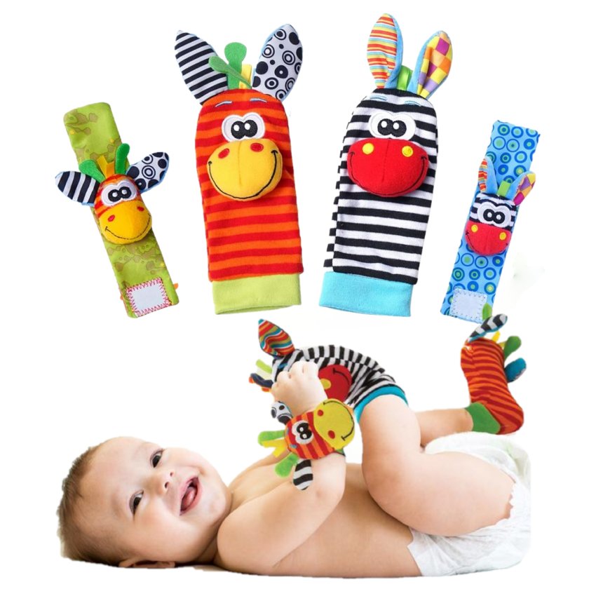 Opaski i skarpetki (4 sztuki) zwierzaki to idealna zabawka dla najmłodszych dzieci. Te ładne i delikatne opaski zapewniają przyjemność z zabawy, nie uciskając małych rączek i stópek.