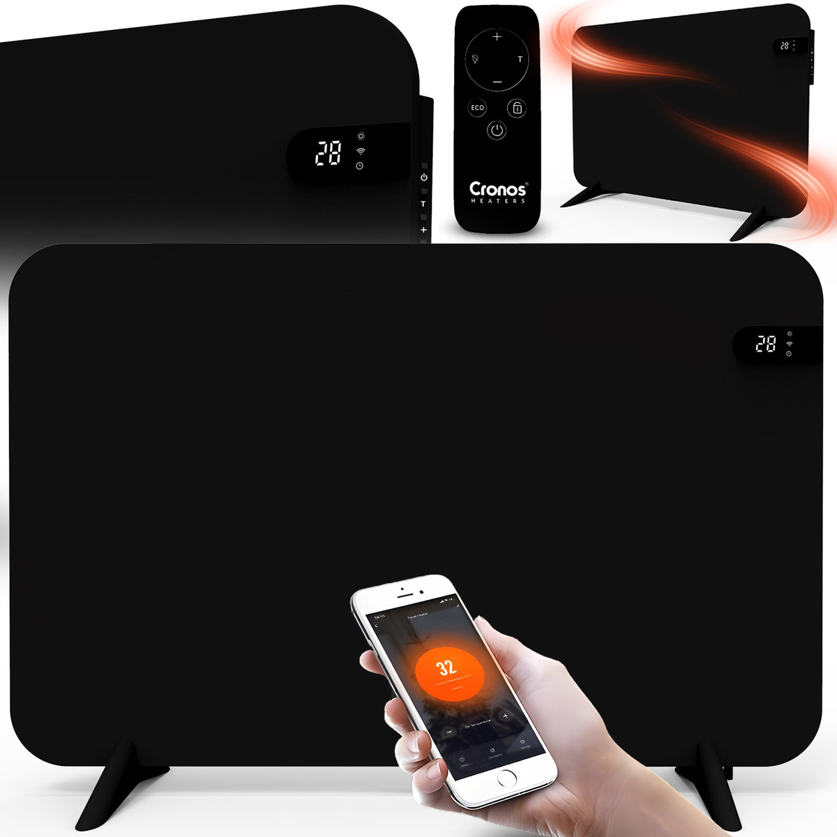 | Nazwa: | Grzejnik elektryczny na podczerwień Cronos WFH-450TW6 Full Black Promiennik IR 450W WiFi Nóżki |