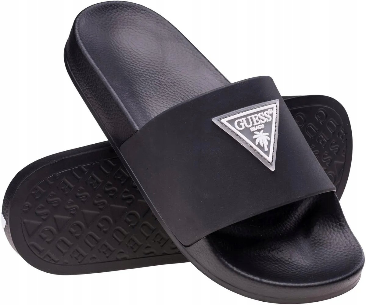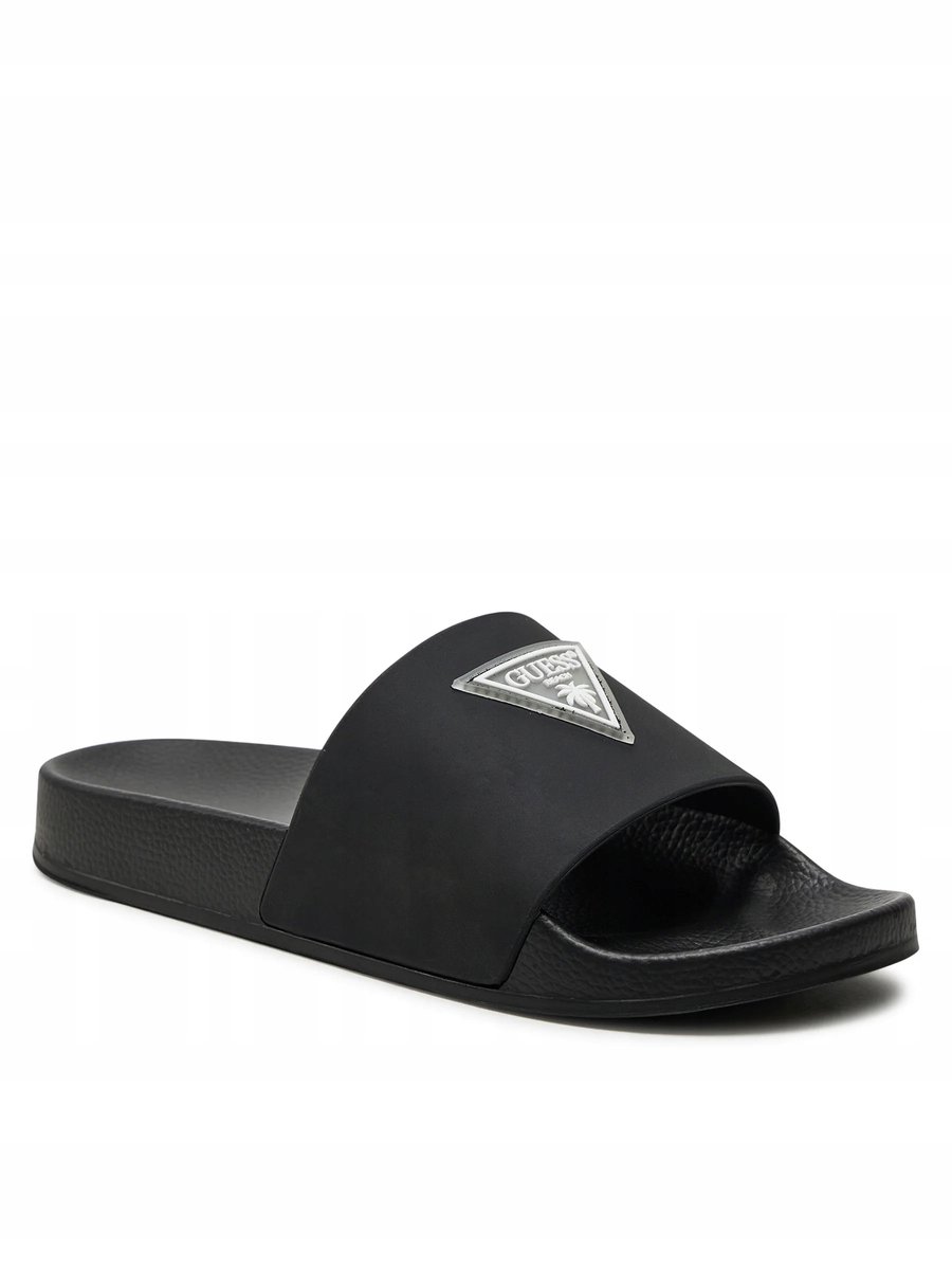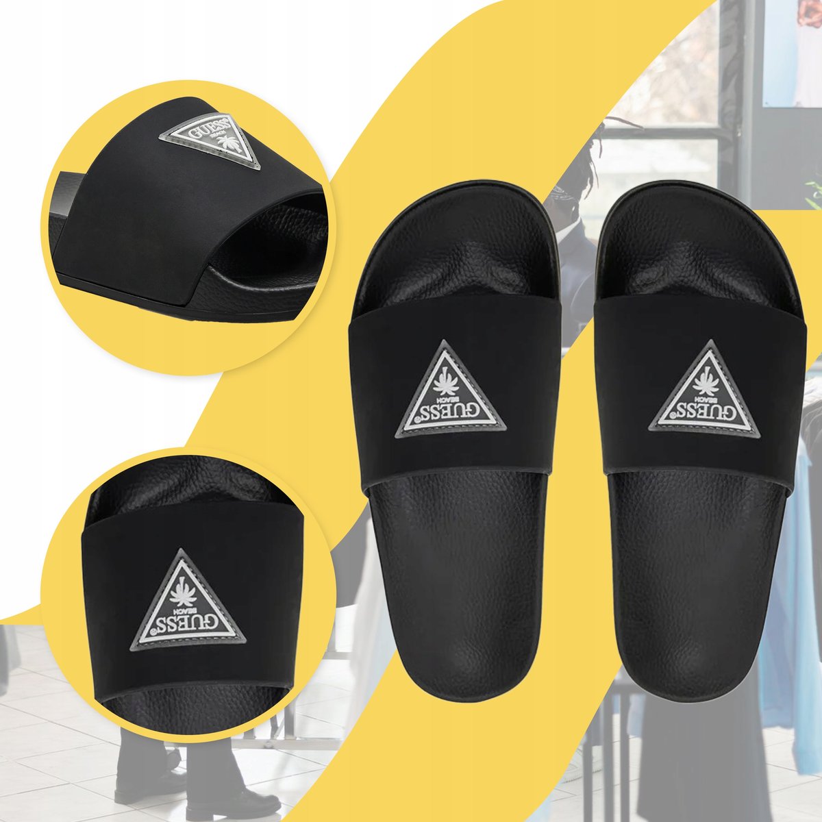 GUESS Damskie Czarne Klapki Eleganckie basenowe do chodzenia LOGO r.37 w kolorze czarnym to wybór łączący w sobie elegancję oraz ogromny komfort noszenia. Sprawdzi się doskonale zarówno podczas codziennych okazji, jak i wyjść do pracy.