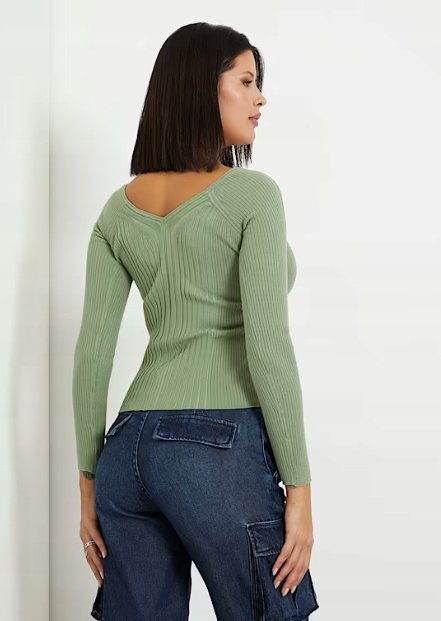 GUESS DOPASOWANY SWETER Z DŁUGIM RĘKAWEM W ŻEBROWANY WZÓR