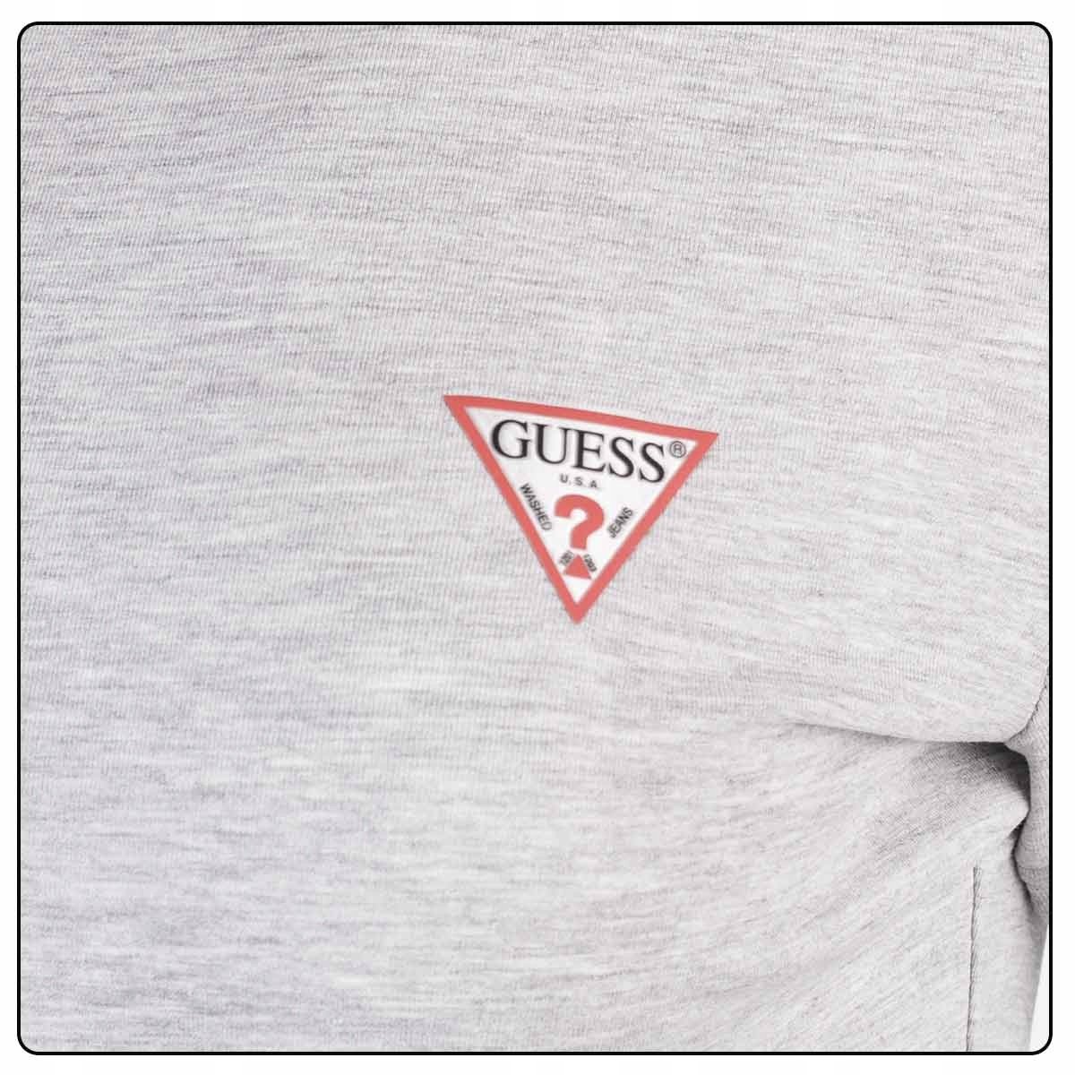 - Logo: na piersi naklejony gumowy trójkąt a w nim napis "GUESS U.S.A." ze znakiem "?"