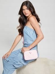 GUESS MAŁA RÓŻOWA TOREBKA NA ZAMEK NA PASKU Z LOGO