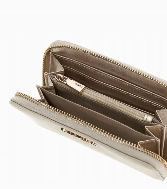 Guess Portfel Beżowy na Zamek Damski Średniej Wielkości Gna