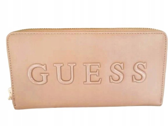 GUESS SKÓRZANY BEŻOWY PORTFEL Z MIEJSCEM NA BILON