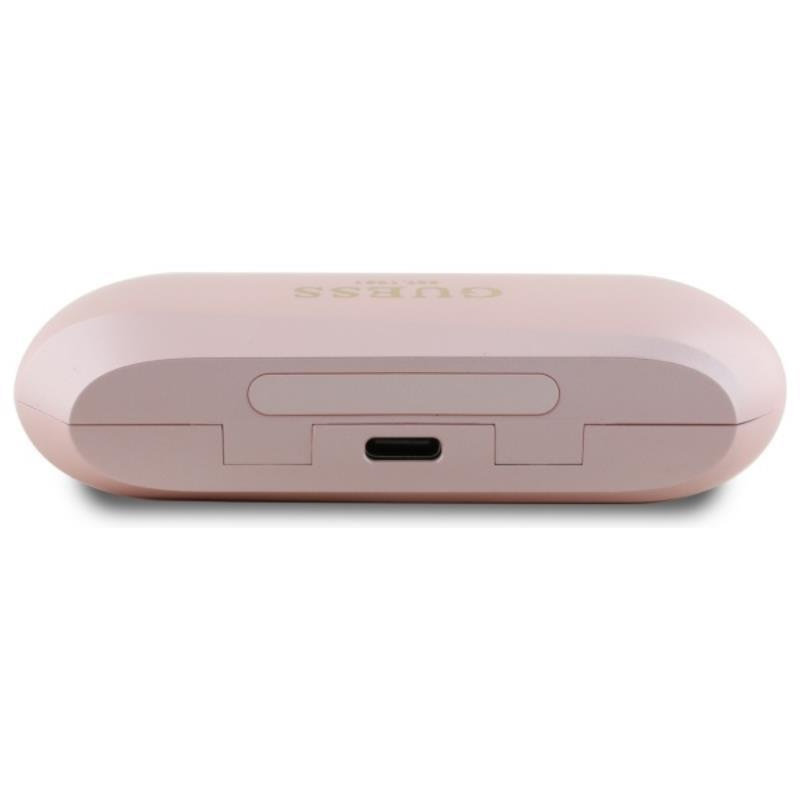 Różowy kolor nadaje słuchawkom wyjątkowego i minimalistycznego wyglądu. Złote logo marki Guess na obudowie dodaje im luksusowego akcentu.