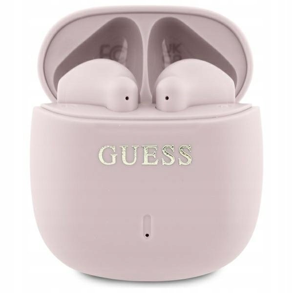 Różowy kolor nadaje słuchawkom wyjątkowego i minimalistycznego wyglądu. Metaliczne logo marki Guess na obudowie dodaje im luksusowego akcentu.