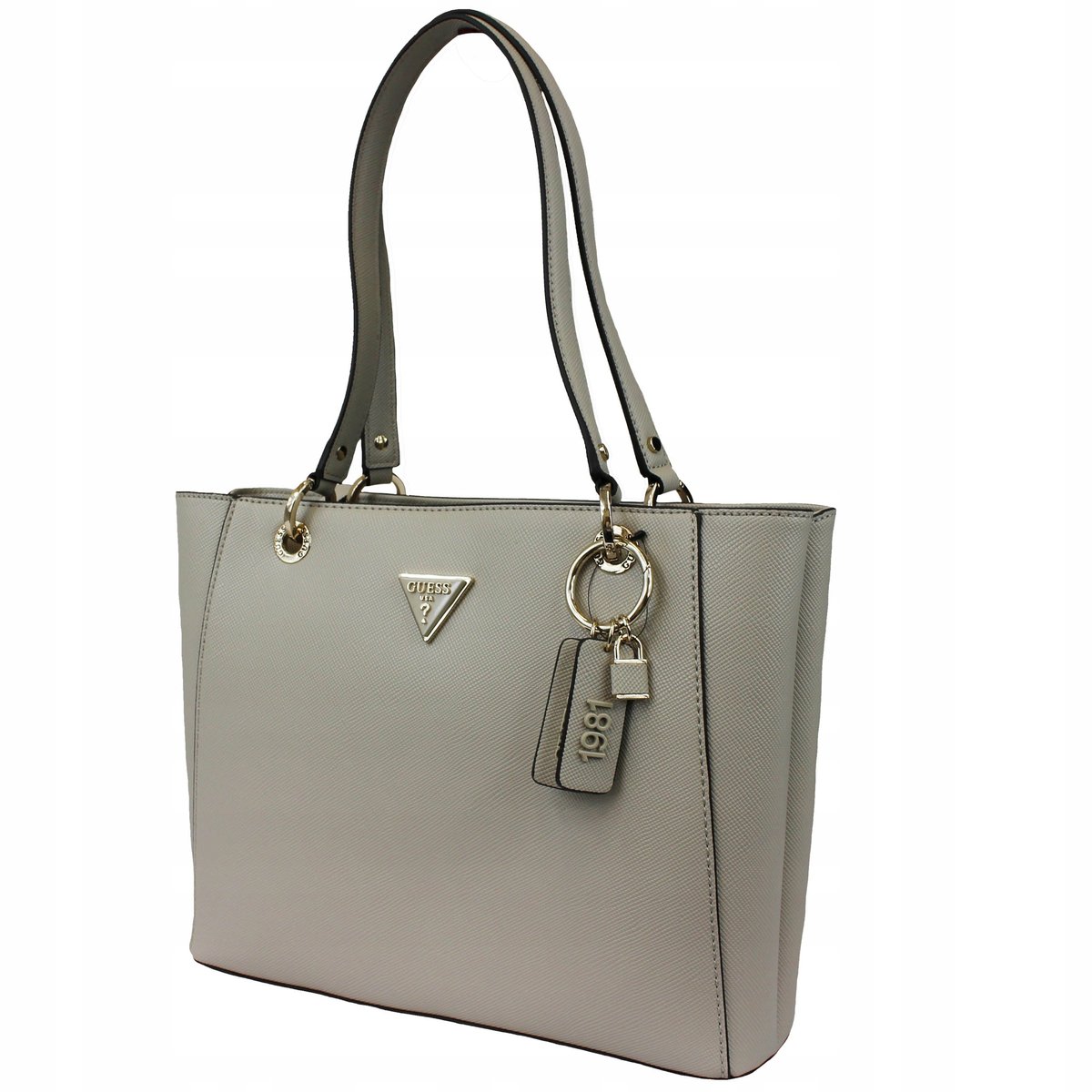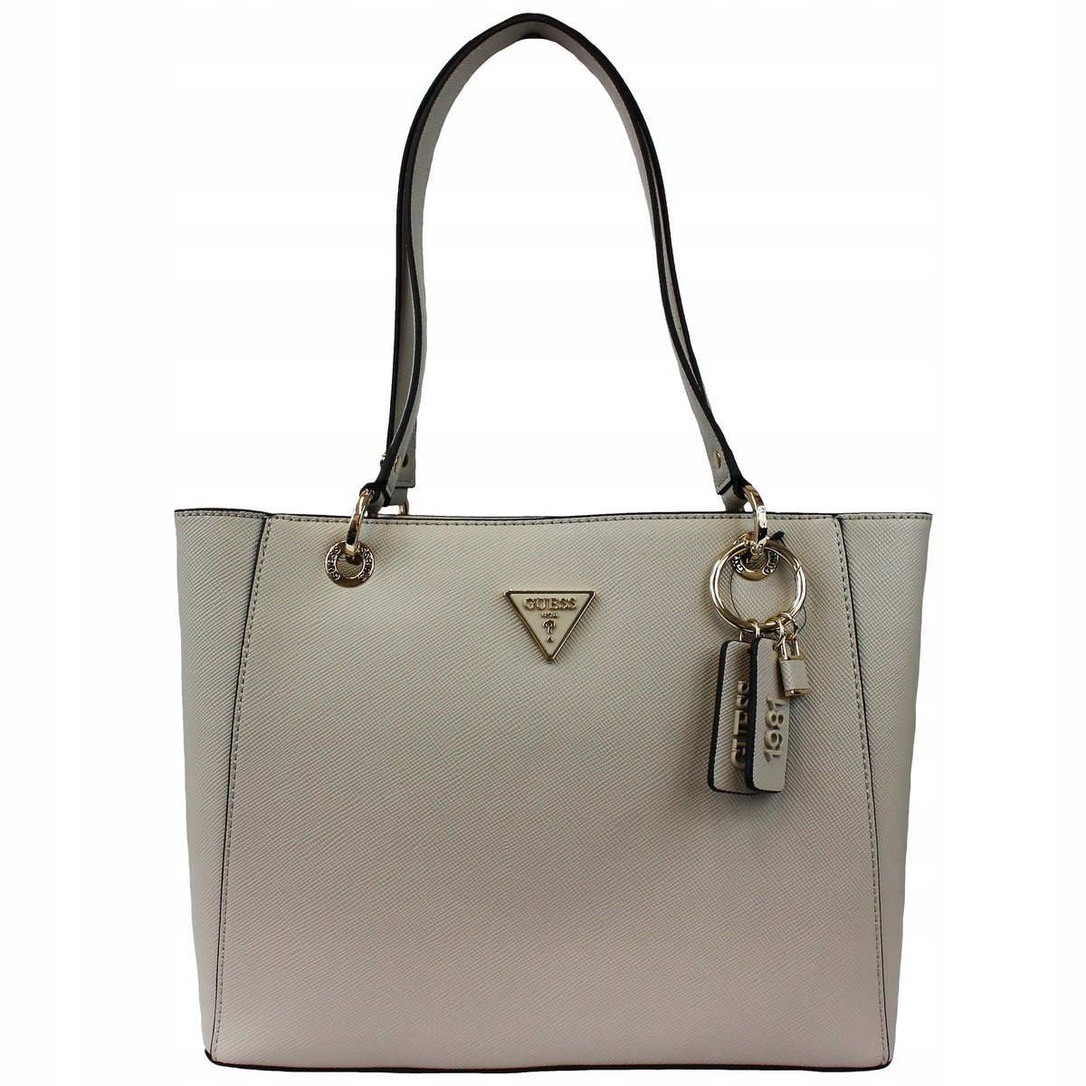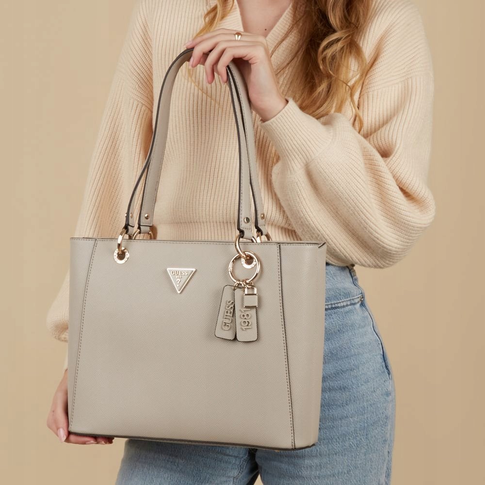 GUESS TOREBKA DAMSKA BEŻOWA KLASYCZNA Z BRELOCZKIEM Opis ProduktuMarka GUESSKolor beżowySkład 100% poliuretan Metka papierowa TakMetka wewnętrzna TakRozmiar uniwersalnyCena ...