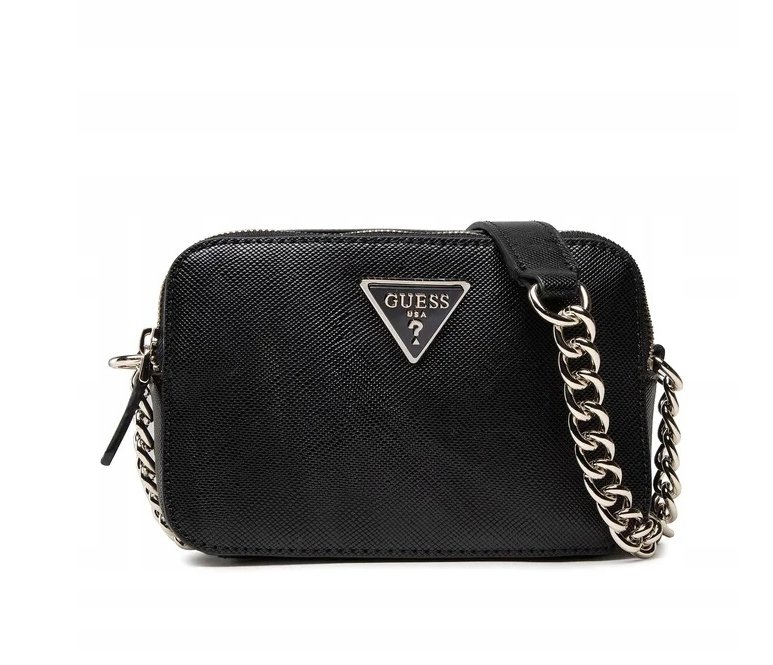 GUESS TOREBKA DAMSKA CZARNA NA PASKU NA ZAMEK Z LOGO DAMSKA