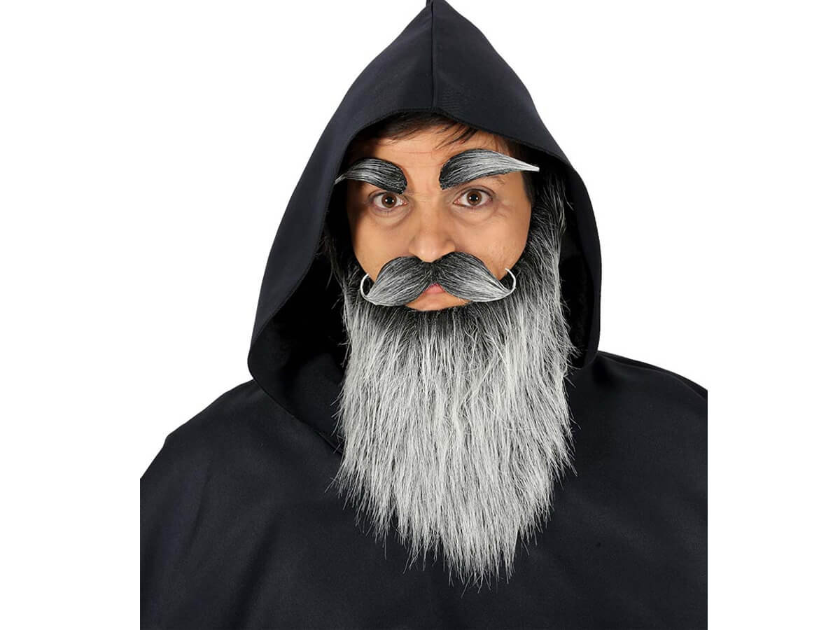 Długa siwa broda z wąsami i brwiami. Opakowanie: 1 szt.