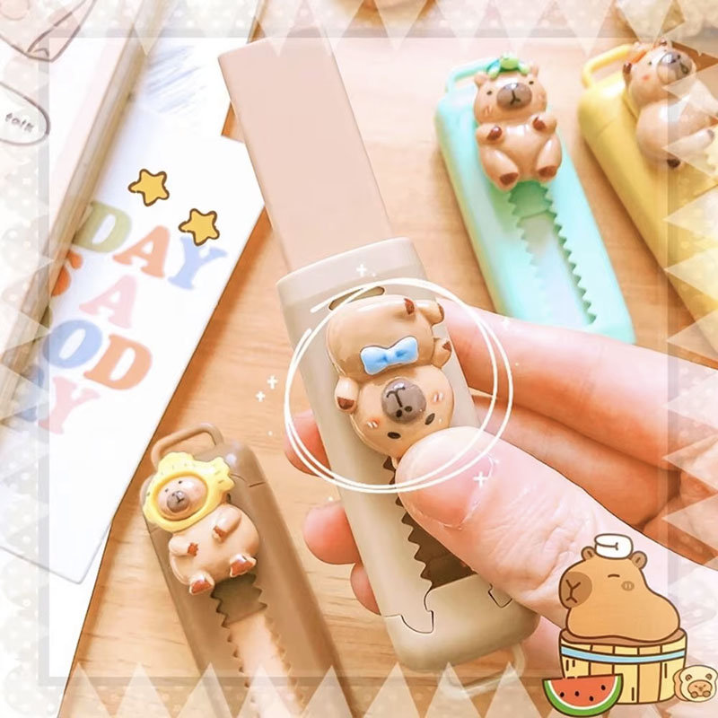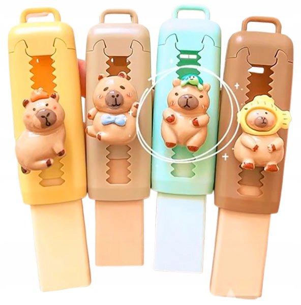 Gumka do ścierania mazania KAPIBARA wysuwana jak nożyk to idealny wybór dla każdego ucznia, który ceni sobie funkcjonalność i estetykę. Dzięki solidnej obudowie, gumka jest chroniona przed zabrudzeniami i uszkodzeniami, co zapewnia jej długotrwałe użytkowanie w szkolnym piórniku. Śliczny design z motywem uroczej KAPIBARY dodaje uroku i sprawia, że korzystanie z niej to prawdziwa przyjemność. Nietoksyczne, łatwe w użyciu i bezpieczne dla dzieci.
