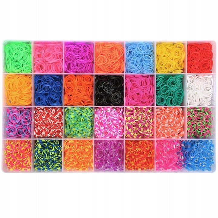 GUMKI DO ROBIENIA BRANSOLETEK 15500 elem XXXL DUŻY ZESTAW KREATYWNY KOLORY Bijące rekordy popularności gumki DIY BANDS, z których sprawne ręce potrafią wyczarować kolorowe bransoletki, naszyjniki, ...