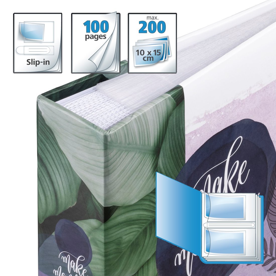 Album na zdjęcia Hama Nature mieści 200 fotografii o wymiarach 10 x 15 cm. Całkowity wymiar albumu to 19 x 25 cm, co pozwala na komfortowe przechowywanie i przeglądanie wspomnień.