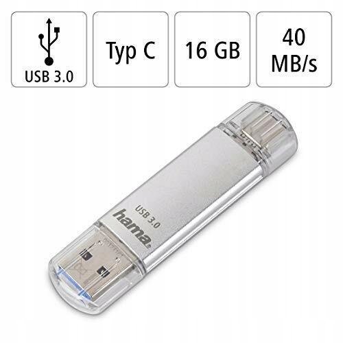 Pendrive Hama FlashPen C-Laeta USB to ultraszybki wymienny nośnik danych o pojemności 16 GB, posiadający interfejs USB 3.0 / USB typu C do uniwersalnego zastosowania i kompatybilny z terminalami ...