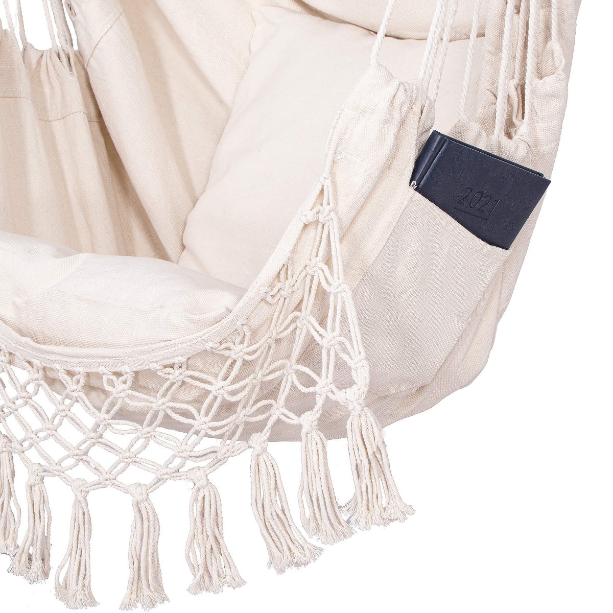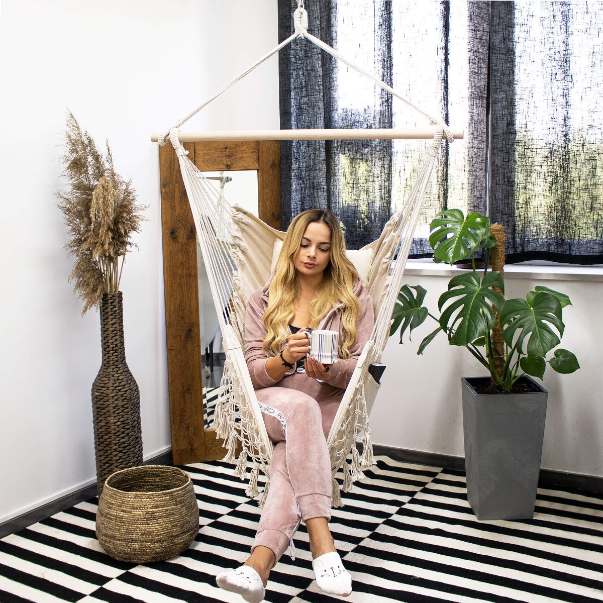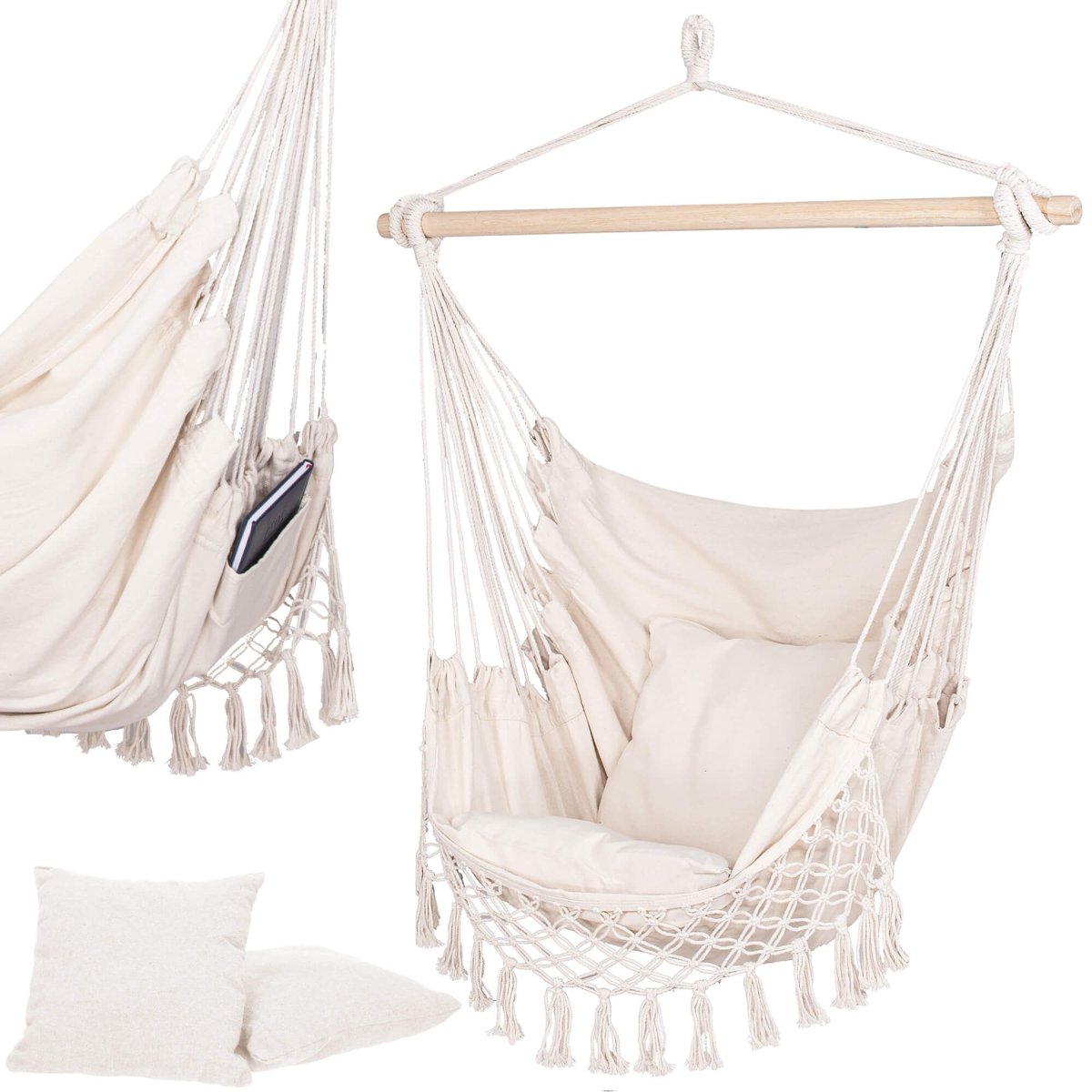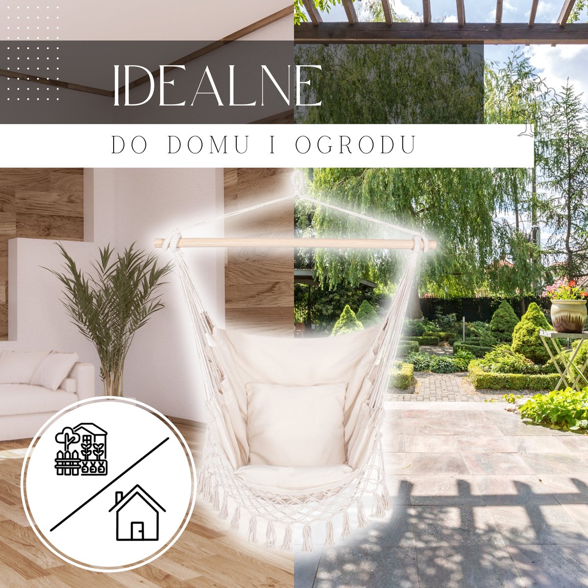Właśnie zrecenzowałem Fotel wiszący, hamak brazylijski z poduszkami, kremowy, 130x100 cm, Springos