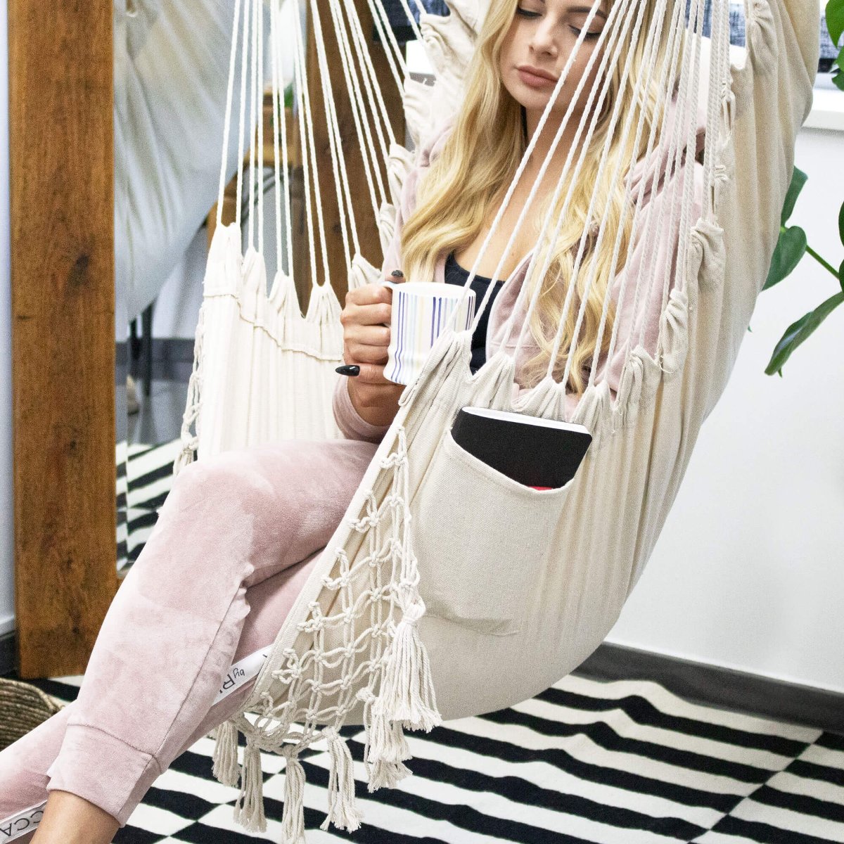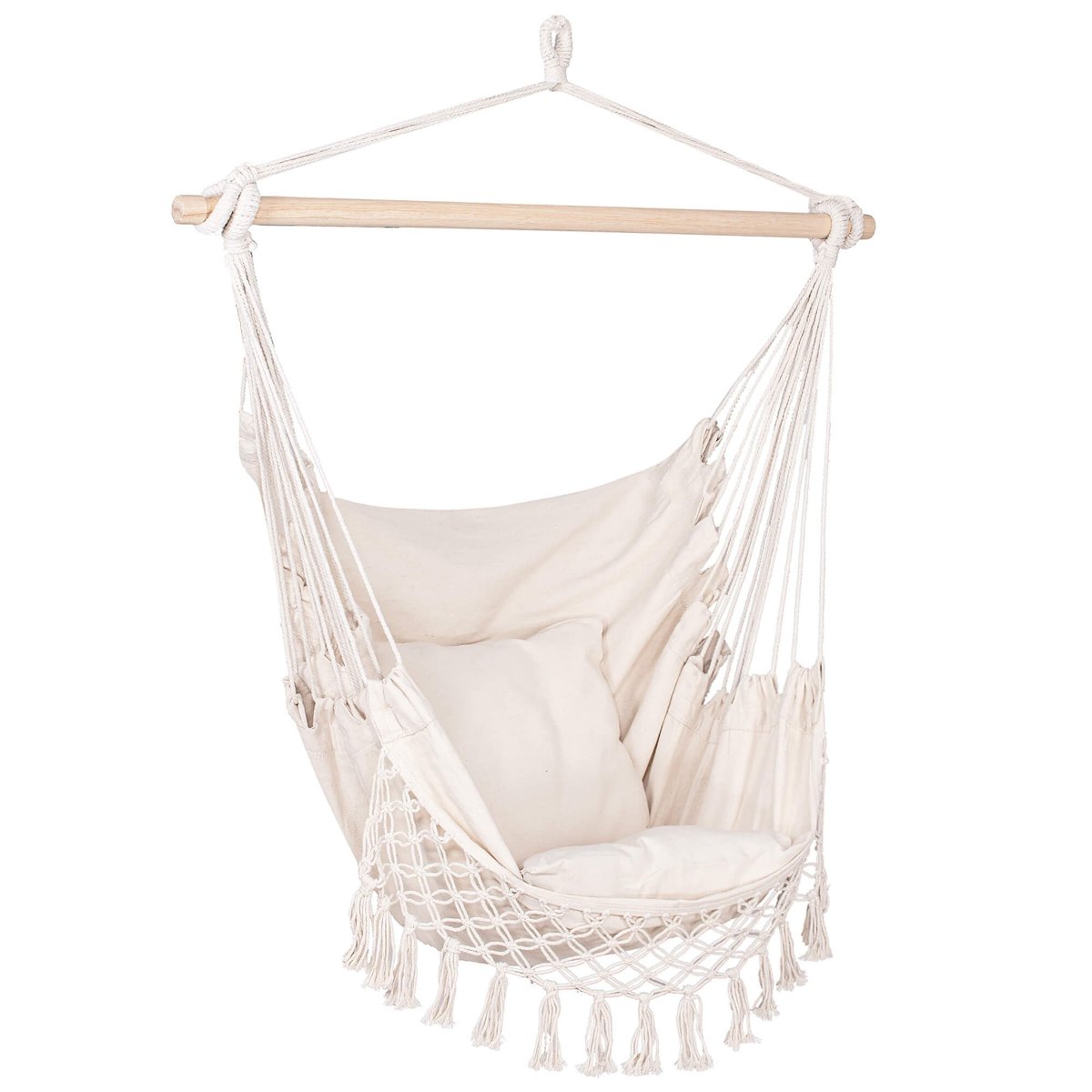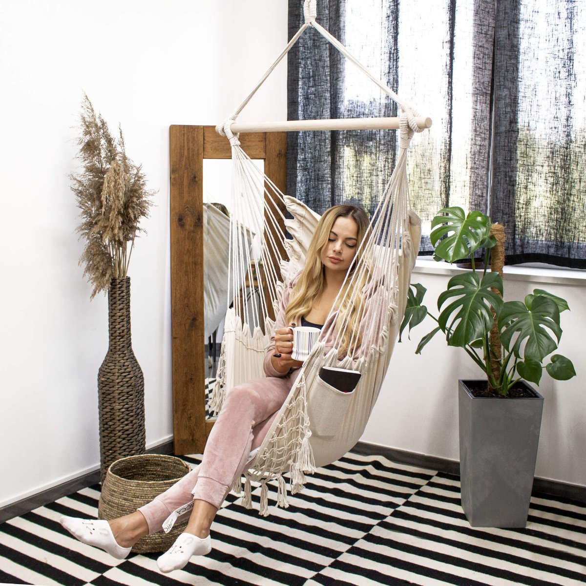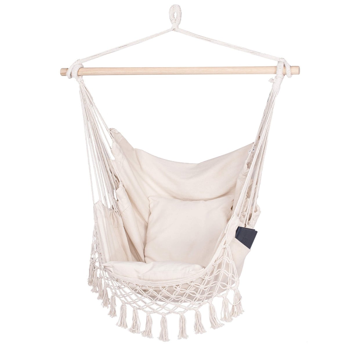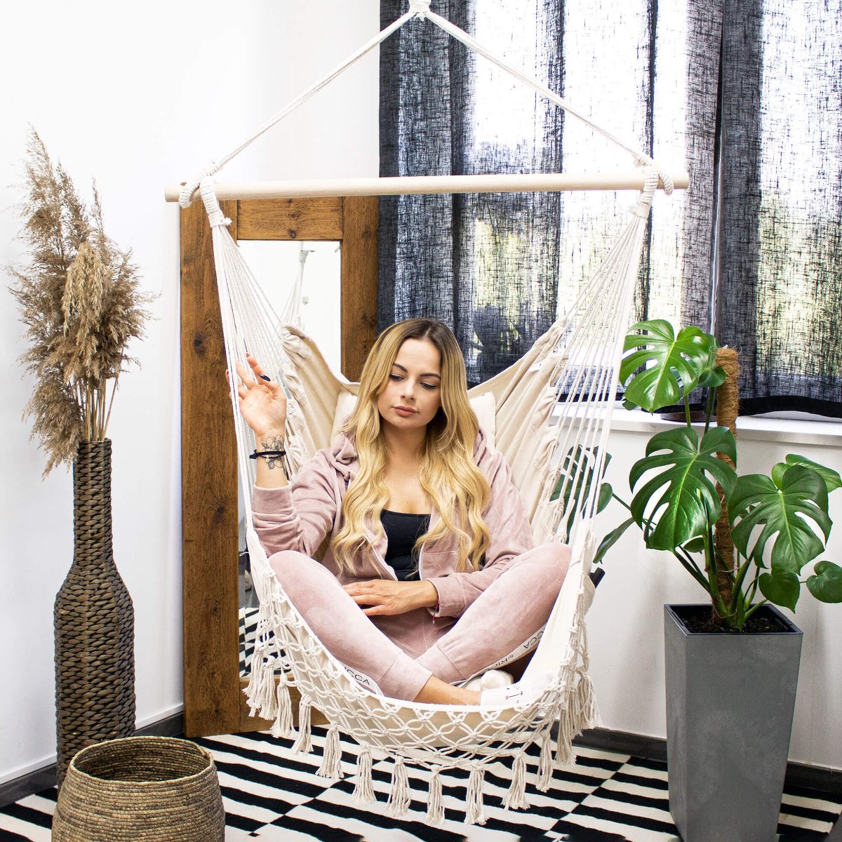 Właśnie zrecenzowałem Fotel wiszący, hamak brazylijski z poduszkami, kremowy, 130x100 cm, Springos