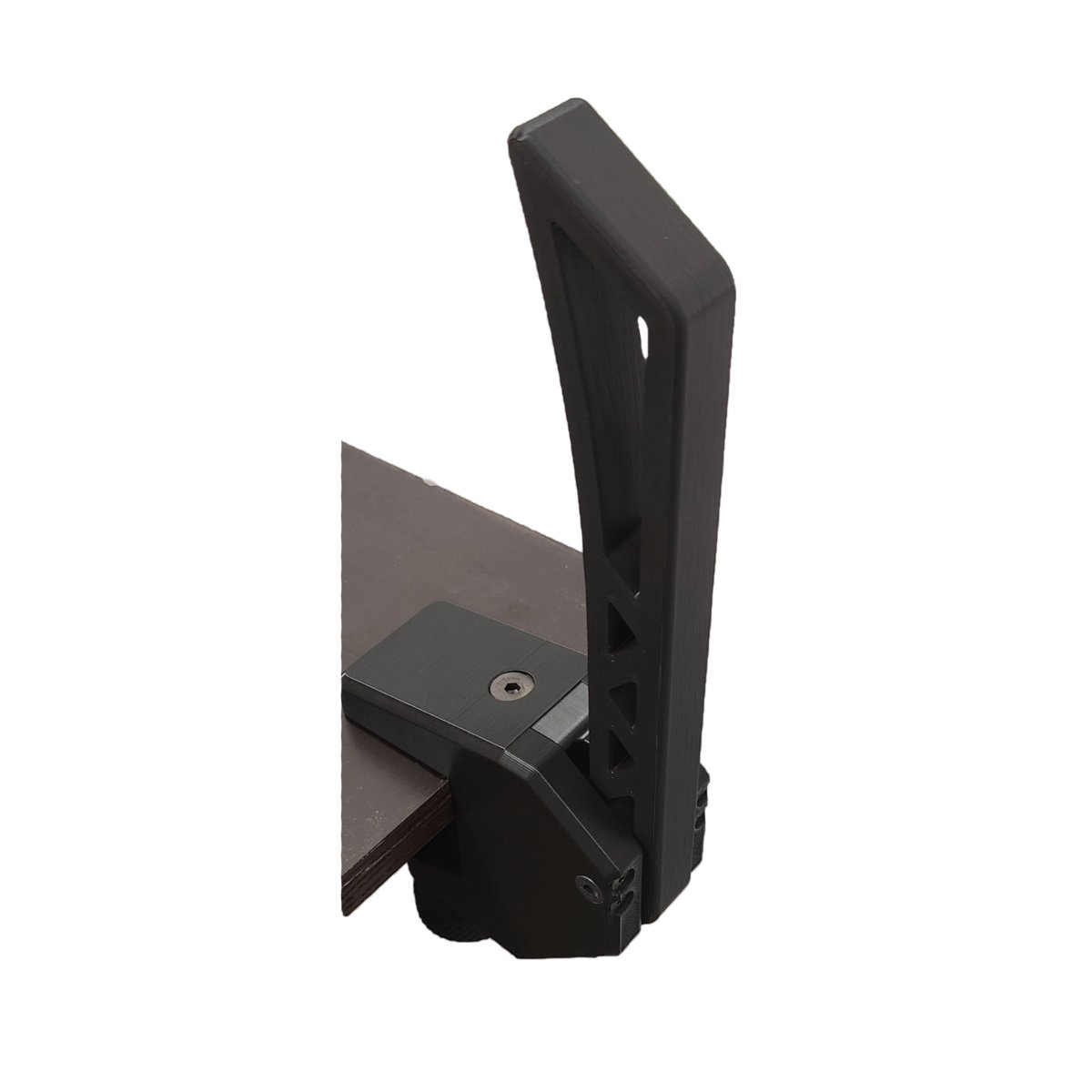 Elementy drukowane wypełnione są w środku na 50/100% w zależności od miejsca, co sprawia, że hamulec jest bardzo wytrzymały. Dodatkowo mocowanie do blatu zostało wzmocnione śrubami,