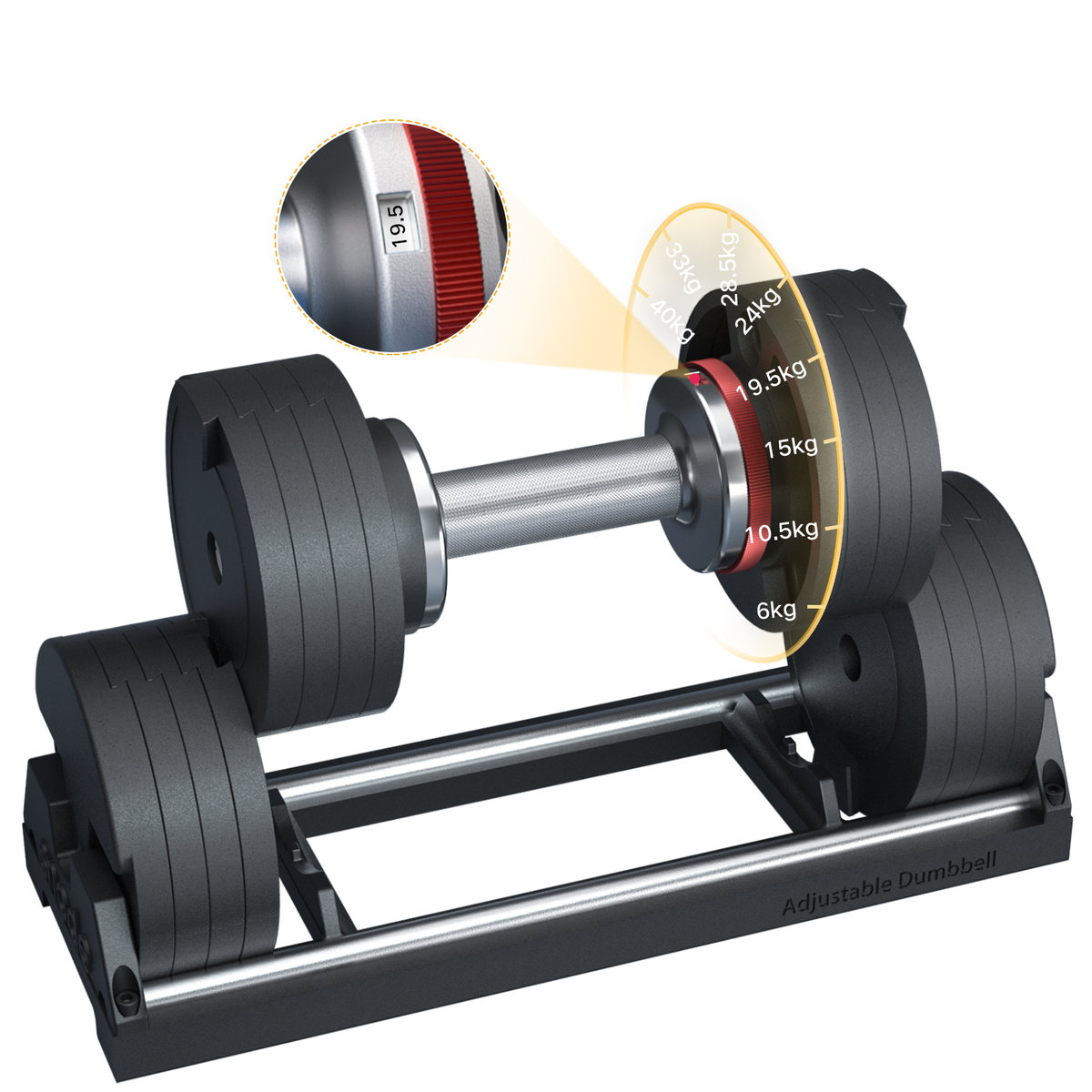 Hantle SNODE oferują 8 poziomów regulacji wagi, od 6 kg do 40 kg. Dzięki precyzyjnemu mechanizmowi, w mgnieniu oka dostosujesz ciężar do swojego treningu, bez konieczności posiadania wielu par hantli. Zamiast bałaganu w Twojej domowej siłowni, masz jeden kompaktowy, wszechstronny sprzęt!