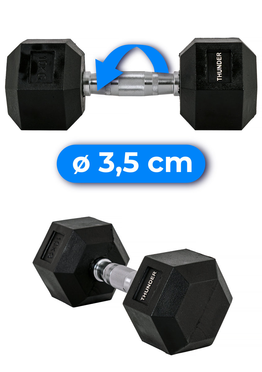 Hantle hexagonalne HEXAGONAL-DUMBBELLS-10KG marki ⚡THUNDER®️⚡- profesjonalna hantla do ćwiczeń