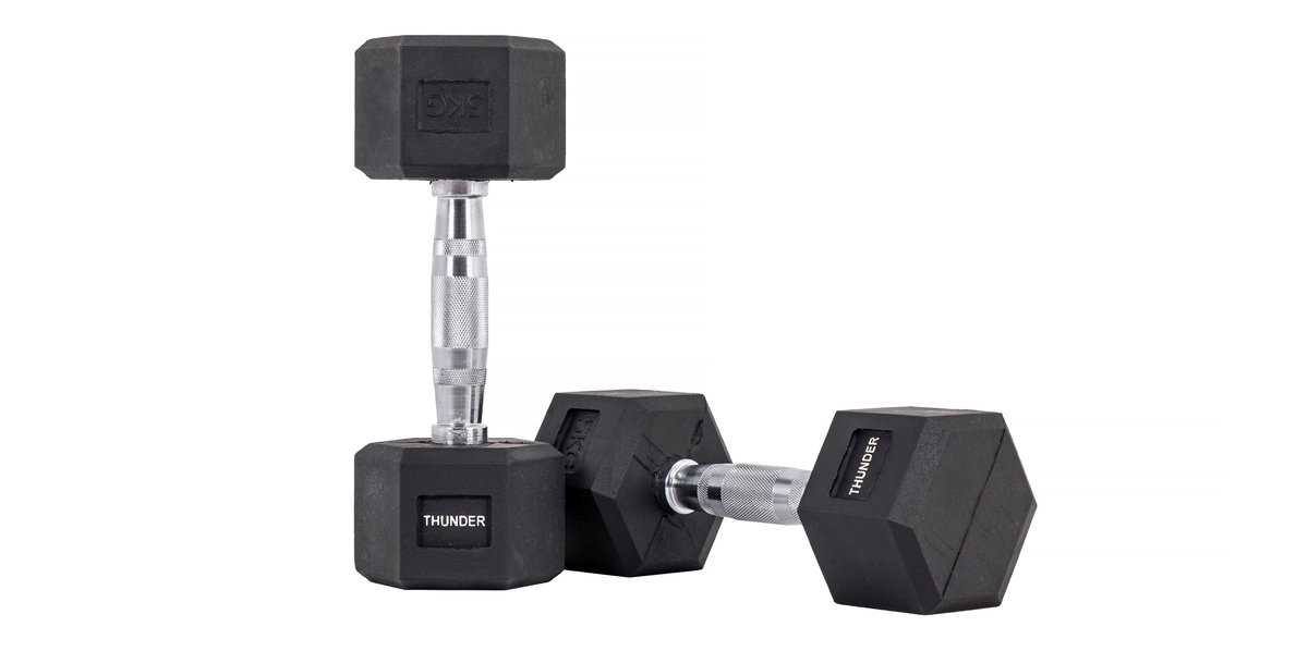 Hantle hexagonalne HEXAGONAL-DUMBBELLS-5KG marki ⚡THUNDER®️⚡- profesjonalna hantla do ćwiczeń
