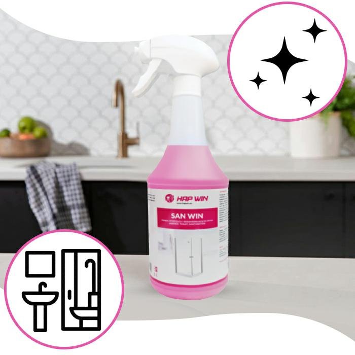 HAP WIN SKUTECZNA PIANKA DO SANITARIATÓW SAN WIN Pianka czyszcząca i odkamieniająca do mycia łazienek, toalet, sanitariatów. WYSOKA JAKOŚĆ Profesjonalny gotowy preparat do czyszczenia ...
