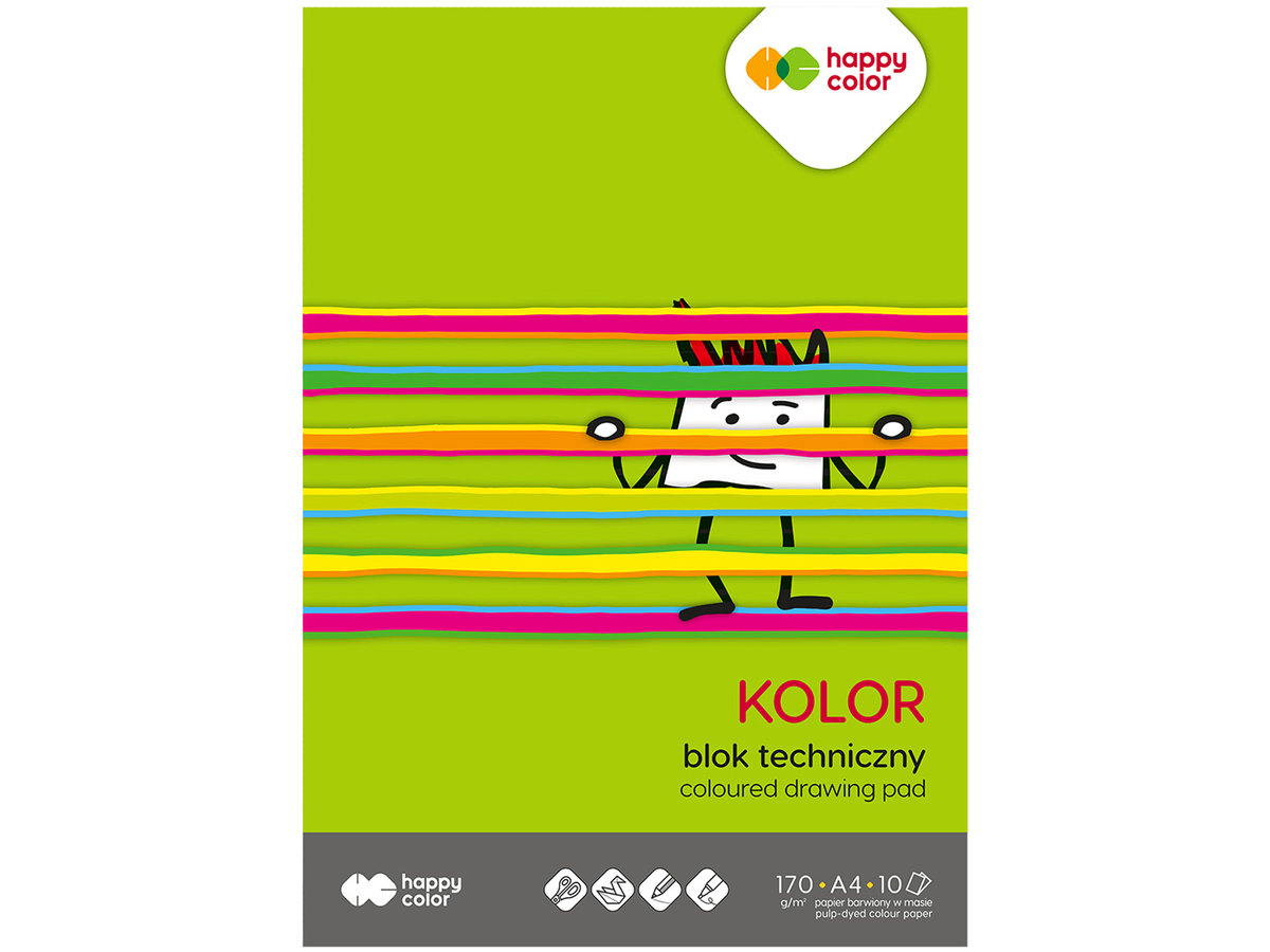 Blok techniczny kolorowy A3, 170g, 10 arkuszy, Happy Color