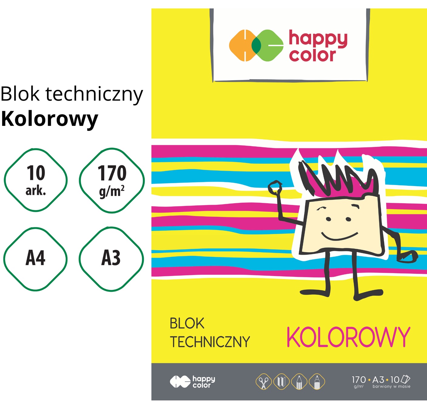 Nazwa: Blok teczniczny kolorowy A3 Happy Color 10 arkuszy