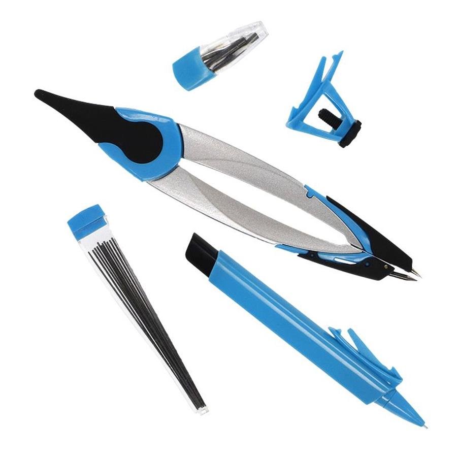 szkolny cyrkiel metalowywykończenie dostępne w 5 kolorach: fioletowym, zielonym, różowym, niebieskim, pomarańczowympłynnie regulowany rozstaw ramionw zestawie wymienne wkłady grafitowe, ...