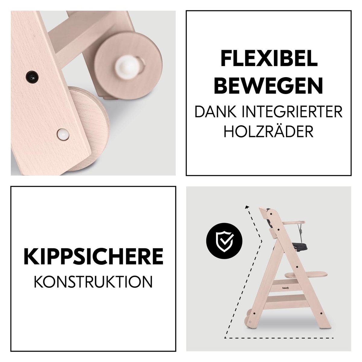 Bezpieczeństwo to priorytet, dlatego Hauck Beta Plus posiada uprząż bezpieczeństwa, która zapewnia stabilność i ochronę podczas siedzenia. System zapobiegający przewróceniu się oraz kółka ułatwiające przemieszczanie krzesełka to kolejne elementy, które wyróżniają ten produkt na rynku. Dzięki nim rodzice mogą mieć pewność, że ich dziecko jest bezpieczne, a krzesełko można łatwo przemieszczać w obrębie domu.