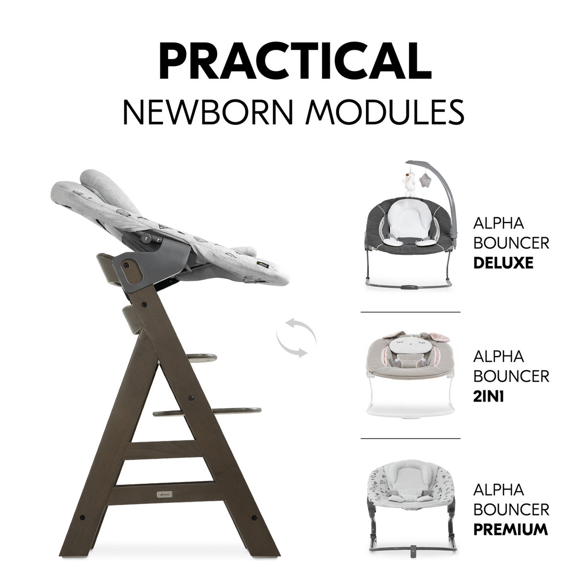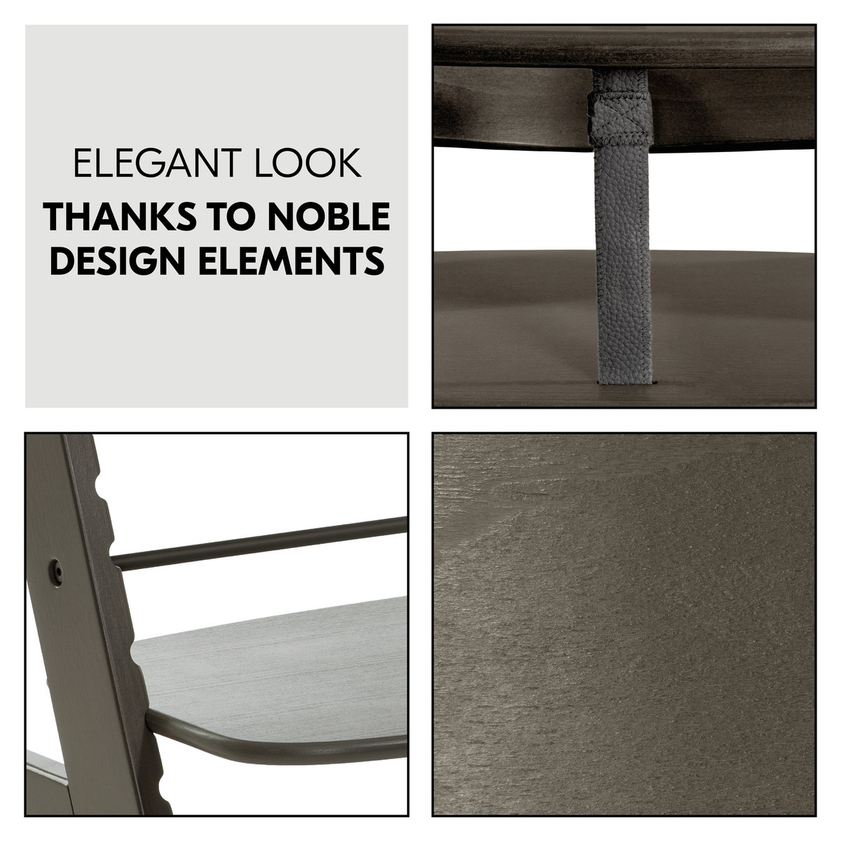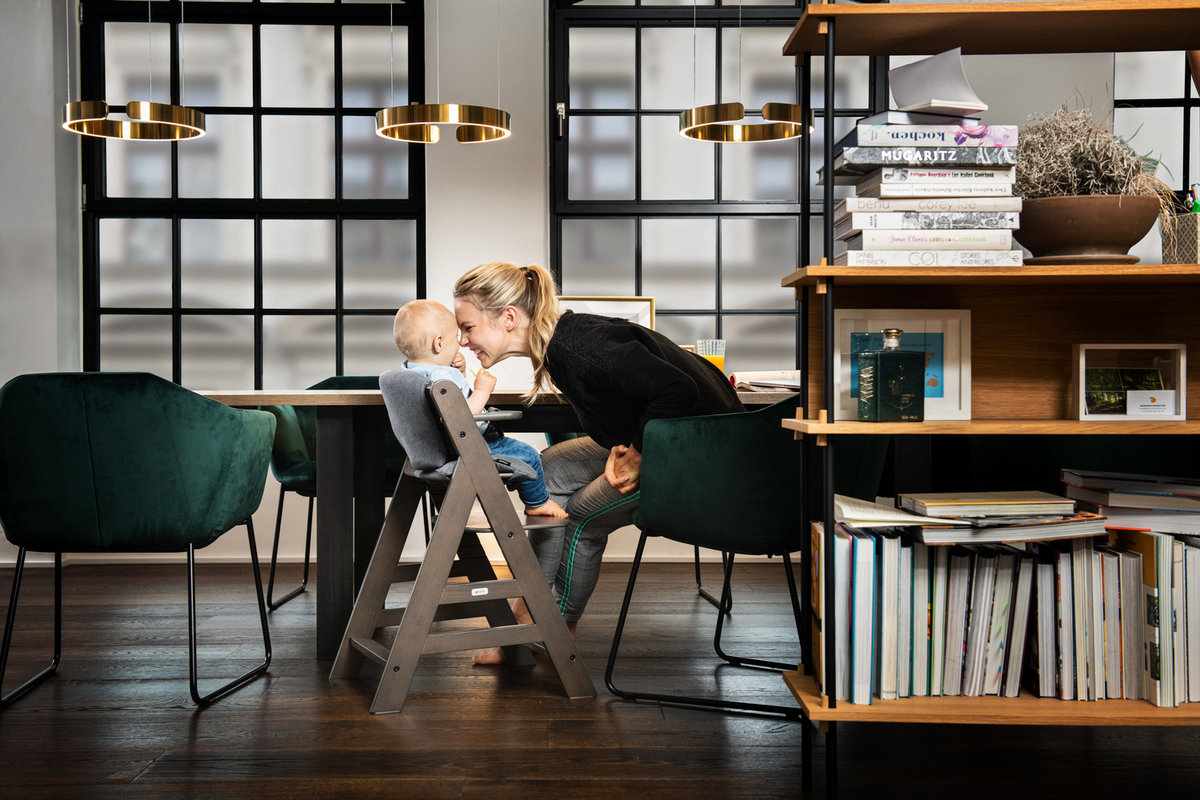 Der Hochstuhl. Krzesełko ALPHA+ Select odznacza się szczególnie wysoką jakością i - dzięki wysokiej jakości powłoce - jest jednym z naszych wysokiej klasy produktów z rodziny ALPHA+. Skórzany pas krokowy doskonale komponuje się z bukowym drewnem krzesełka, a metalowe elementy dopełniają elegancki zestaw. W rezultacie ALPHA+ Select jest optymalnym wyborem dla nowoczesnych rodziców, którzy chcą krzesełka do karmienia, które jest nie tylko wysokiej jakości, ale także przyciąga wzrok. W ALPHA+ Select Twój mały skarb może jeść razem z Tobą przy tym samym stole od 6 miesiąca życia. W połączeniu z przytulnym zestawem dla noworodków Alpha Bouncer Premium, krzesełko może być używane od narodzin. Ponadto nasze krzesełko ALPHA+ Select to prawdziwie naturalny produkt wykonany z wytrzymałego europejskiego drewna bukowego, dzięki czemu jest wyjątkowo stabilne, odporne na przechylanie i niezwykle sprężyste. Wysokość i głębokość siedziska i podnóżka można regulować. W ten sposób możesz dostosować krzesełko do indywidualnych faz wzrostu swojego potomstwa, oferując jednocześnie ergonomiczną postawę i wygodną pozycję siedzącą. Dzięki barierce ochronnej w ALPHA+, pasowi krokowemu i 5-punktowym pasom - które są już w zestawie - Twój maluch zawsze będzie siedział bezpiecznie w krzesełku. Nie zapominajmy, że ALPHA+ Select jest odpowiedni dla dzieci do około 12 roku życia, ale oferuje również praktyczne siedzisko dla dorosłych do 90 kg. To sprawia, że nasza ALPHA+ Select jest towarzyszem na całe życie. Nasza rekomendacja: ALPHA+ Select można łączyć z naszym wysokiej jakości reduktorem siedziska Alpha Cosy Select lub wkładką do krzesełka Highchair Pad Select, a także drewnianą tacą Alpha (dostępna w odpowiadających kolorach) lub tacą Alpha (wykonaną z tworzywa sztucznego z regulacją głębokości) .