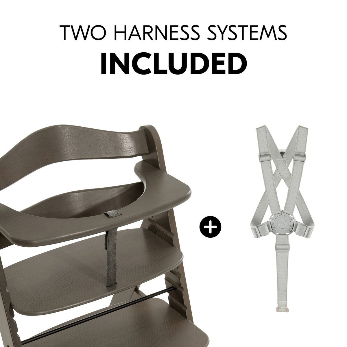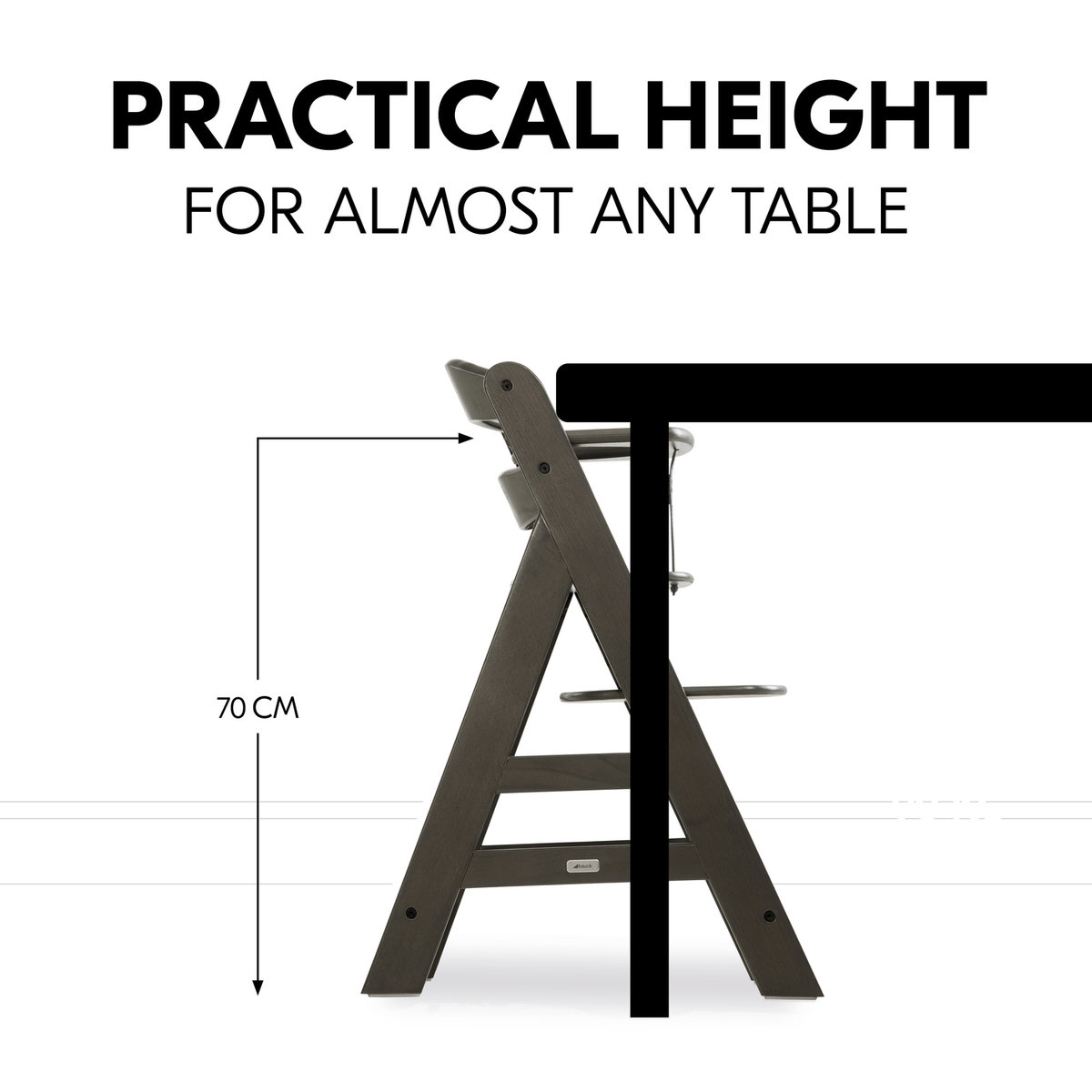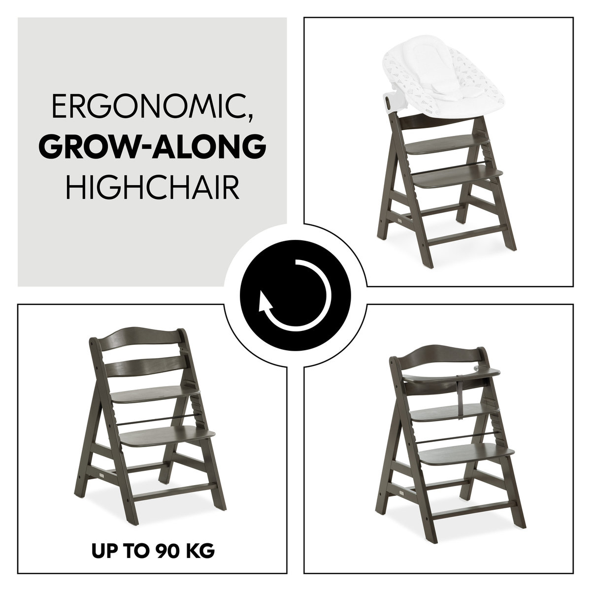 Der Hochstuhl. Krzesełko ALPHA+ Select odznacza się szczególnie wysoką jakością i - dzięki wysokiej jakości powłoce - jest jednym z naszych wysokiej klasy produktów z rodziny ALPHA+. Skórzany pas krokowy doskonale komponuje się z bukowym drewnem krzesełka, a metalowe elementy dopełniają elegancki zestaw. W rezultacie ALPHA+ Select jest optymalnym wyborem dla nowoczesnych rodziców, którzy chcą krzesełka do karmienia, które jest nie tylko wysokiej jakości, ale także przyciąga wzrok. W ALPHA+ Select Twój mały skarb może jeść razem z Tobą przy tym samym stole od 6 miesiąca życia. W połączeniu z przytulnym zestawem dla noworodków Alpha Bouncer Premium, krzesełko może być używane od narodzin. Ponadto nasze krzesełko ALPHA+ Select to prawdziwie naturalny produkt wykonany z wytrzymałego europejskiego drewna bukowego, dzięki czemu jest wyjątkowo stabilne, odporne na przechylanie i niezwykle sprężyste. Wysokość i głębokość siedziska i podnóżka można regulować. W ten sposób możesz dostosować krzesełko do indywidualnych faz wzrostu swojego potomstwa, oferując jednocześnie ergonomiczną postawę i wygodną pozycję siedzącą. Dzięki barierce ochronnej w ALPHA+, pasowi krokowemu i 5-punktowym pasom - które są już w zestawie - Twój maluch zawsze będzie siedział bezpiecznie w krzesełku. Nie zapominajmy, że ALPHA+ Select jest odpowiedni dla dzieci do około 12 roku życia, ale oferuje również praktyczne siedzisko dla dorosłych do 90 kg. To sprawia, że nasza ALPHA+ Select jest towarzyszem na całe życie. Nasza rekomendacja: ALPHA+ Select można łączyć z naszym wysokiej jakości reduktorem siedziska Alpha Cosy Select lub wkładką do krzesełka Highchair Pad Select, a także drewnianą tacą Alpha (dostępna w odpowiadających kolorach) lub tacą Alpha (wykonaną z tworzywa sztucznego z regulacją głębokości) .
