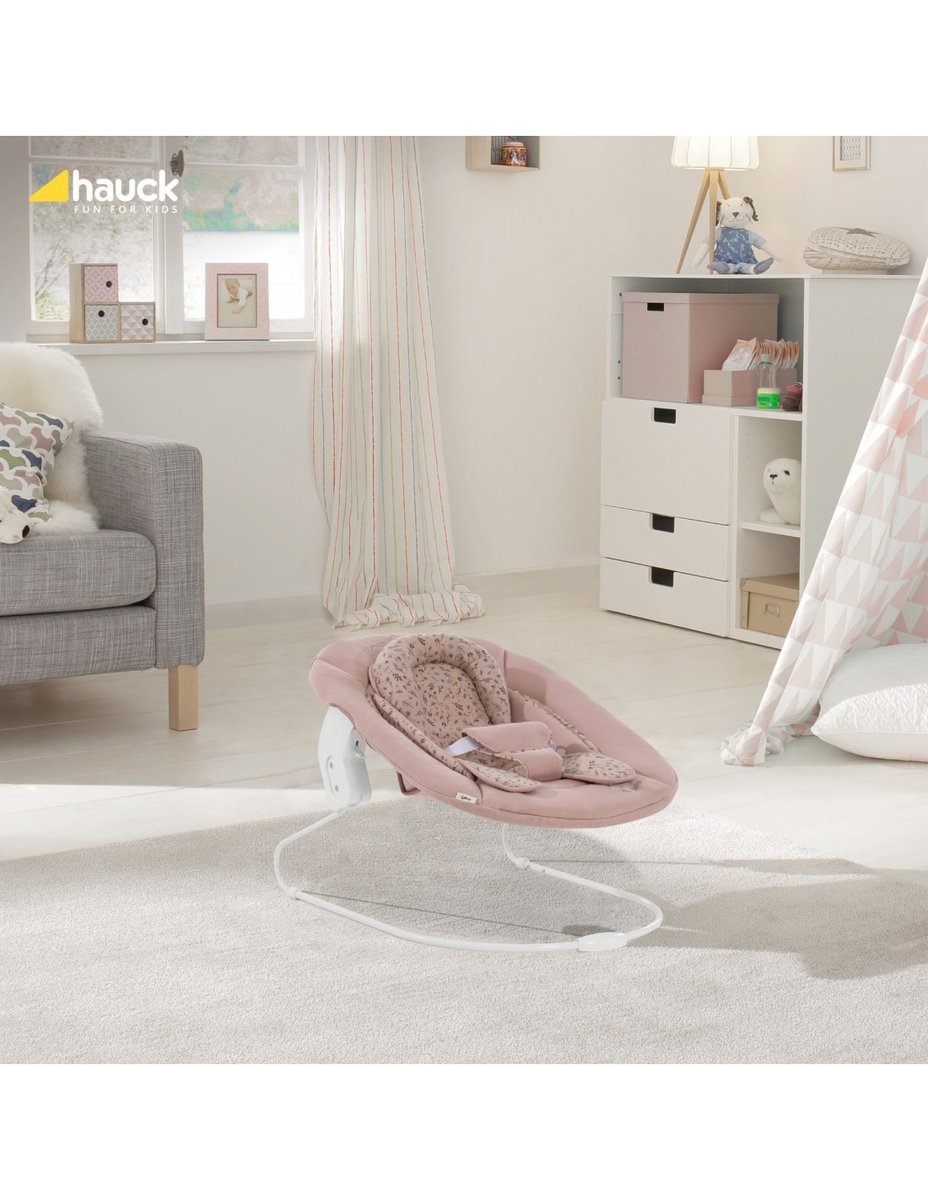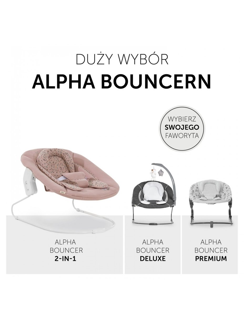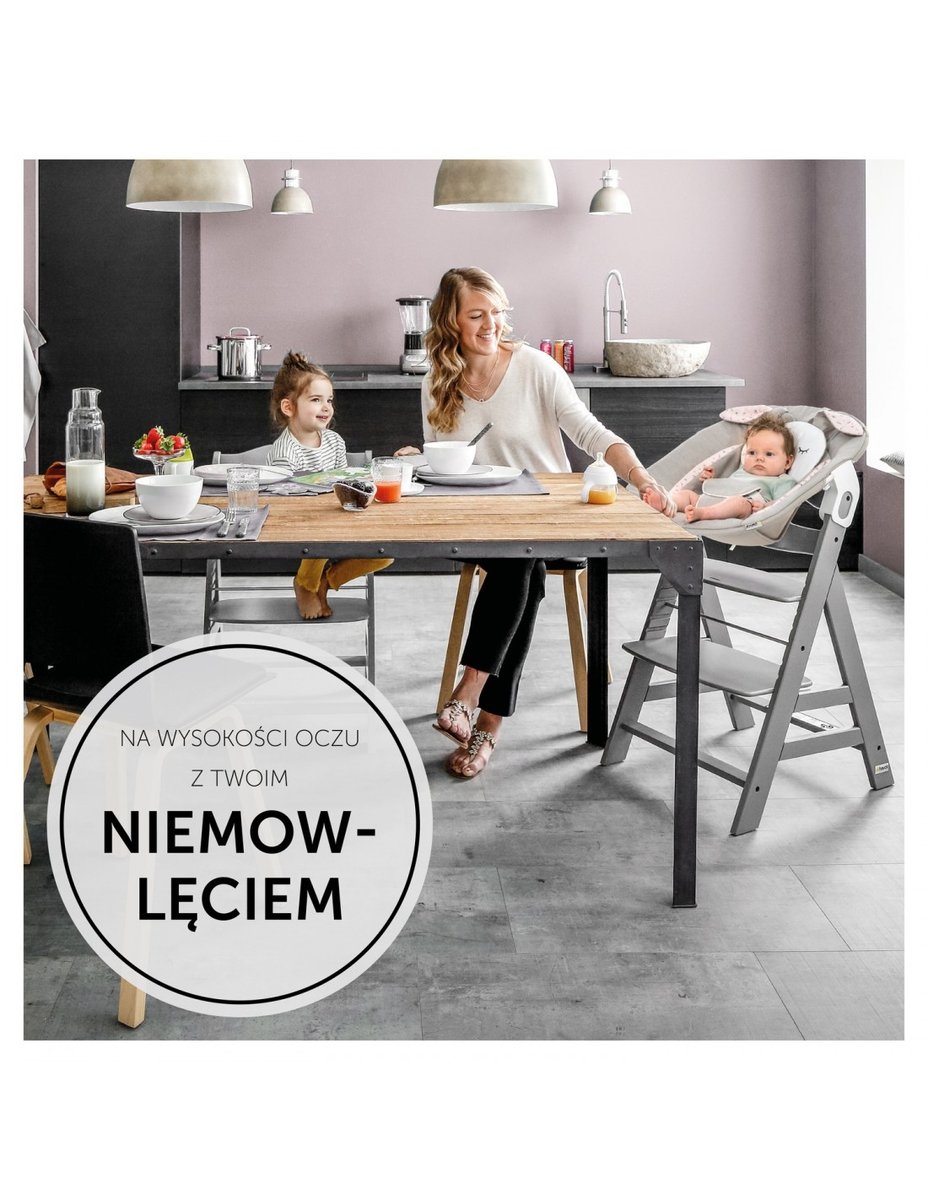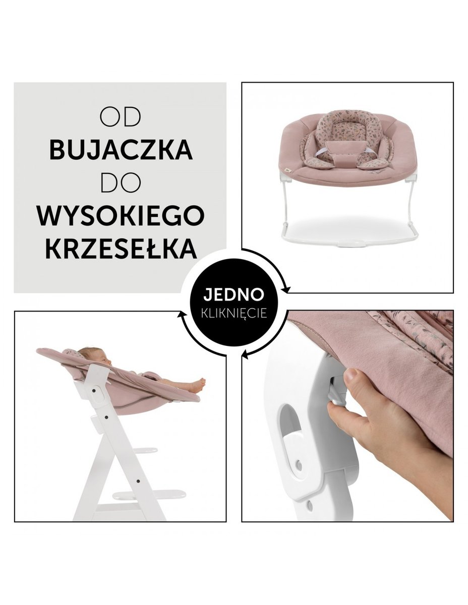 2 W 1 KOŁYSKA DZIECIĘCA I NAKŁADKA DLA NOWORODKA NA KRZESEŁKO DREWNIANE HAUCK Leżaczek 2 w 1 Alpha Bouncer spełnia dwie funkcje: służy jako kołyska wraz z dostarczonym w komplecie stelażem lub jako nakładka na drewniane krzesełko do karmienia Alpha+. Dzięki temu rozwiązaniu twoje maleństwo jest już od początku z wami przy stole, uczęstnicząc w pełni w życiu rodzinnym. Przy pomocy kilku ruchów Alpha Bouncer nakładany jest na boki stabilnego krzesełka do karmienia, będąc bezpiecznie zamocowanym i gotowym od razu do użycia. W ten sposób twój skarb jest zawsze przy tobie, na wysokości oczu, co wzmacnia waszą więź oraz jest wygodne dla twoich pleców podczas karmienia buteleczką. 3-punktowe zapięcie zabezpiecza twoje dziecko. Miękki materiał pokrowca, boczne obicie i wyjmowana wkładka pomniejszająca zapewniają niemowlęciu płaską, ergonomiczną pozycję leżącą oraz bezpieczeństwo i komfort. Przytulne tkaniny delikatnie otulają skórę dziecka. Poszycie może być zdjęte i wyprane. Zmiana funkcji Alpha Bouncer z nakładki na krzesełko w kołyskę jest bardzo prosta: jednym ruchem uwalniasz nadstawkę z krzesełka i nakładasz ją na dostarczony stelaż, tworząc w ten sposób bujaczek. Dziecko wprawia kołyskę własnymi ruchami ciała w lekkie kołysanie, co działa na nie uspokajająco.