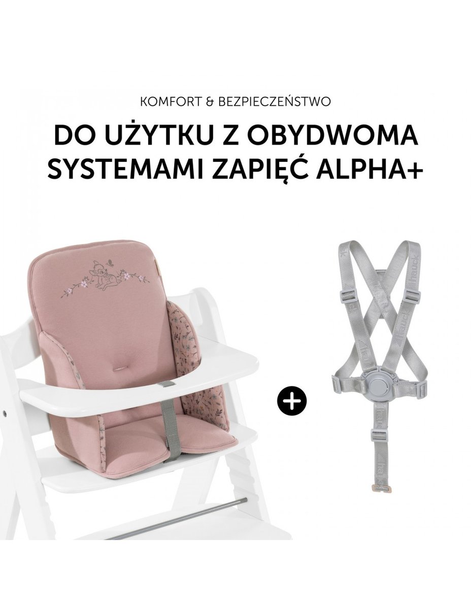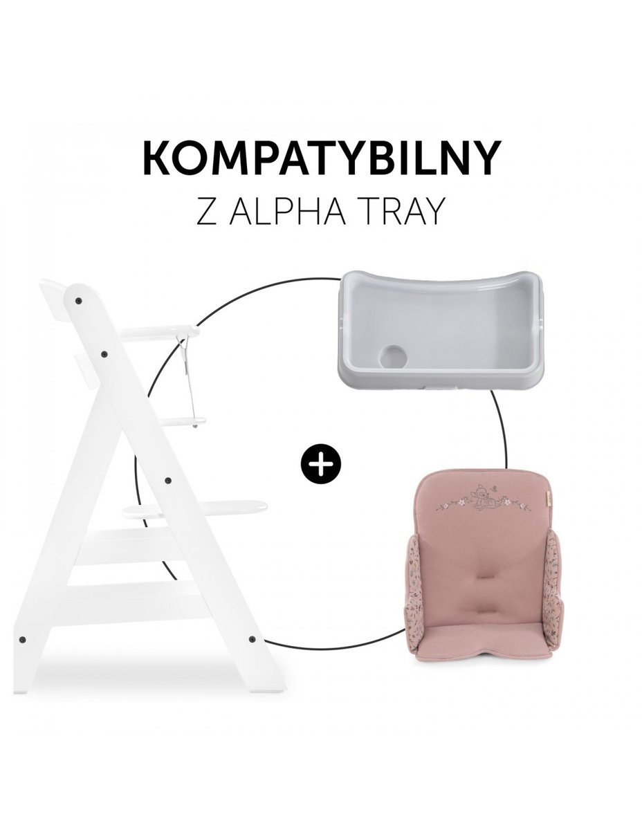 Wygodny reduktor siedziska z bocznym wymoszczeniem. Alpha Cosy Select służy szczególnie w pierwszych miesiącach, w których twoje dziecko siedzi w drewnianym krzesełku, jako miękko wyściełane, komfortowe pomniejszenie siedziska. Wyjątkowo wysokie oparcie oraz wymoszczone boki chronią główkę, zapewniając dodatkową stabilność. Wkładka wykonana z wysokiej jakości bawełny dżersejowej jest szczególnie przyjazna dla skóry twojego dziecka. Miękka tkanina o nowoczesnej strukturze przepuszcza powietrze oraz reguluje wilgotność, będąć bardzo przyjemna dla twojego dziecka nawet w ciepłe dni. Dzięki powłoce antypoślizgpwej od spodu wkładka zapewnia bezpieczeństwo, nie przesuwając się, nawet podczas psot czy zabawy. Jest ona także kompatybilna z obydwoma wintegrowanymi w krzesełko systemami zapięć. Zaprojektowana specjalnie na potrzeby drewnianego krzesełka hauck, wkładka Alpha Cosy Select pasuje idealnie do każdego jego typu. Akcesoria, takie jak taca Alpha Tray są kompatybilne i znajdują jednoczesne zastosowanie z wkładką w krzesełku.