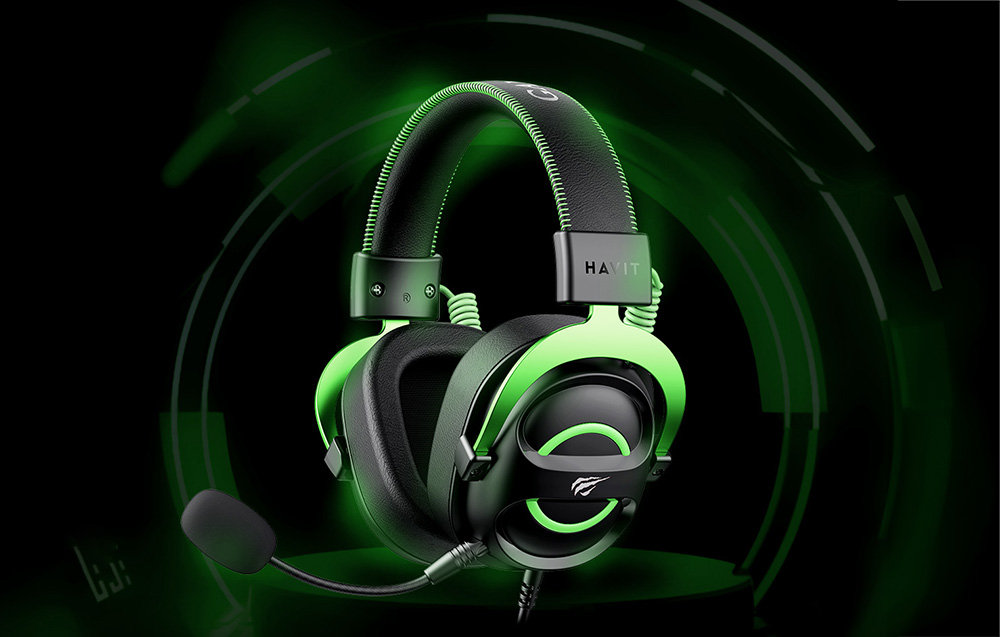 Słuchawki gamingowe Havit H2002E (Czarno-zielone)Doskonały dźwięk i komfort użytkowania podczas długich sesji gamingowych.Regulowany pałąk dla idealnego dopasowania do każdej głowy i lepszej izolacji
