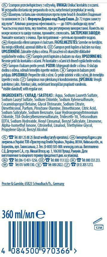 | Nazwa: | Head&Shoulders, szampon przeciwłupieżowy, Smooth&Silky 2w1, 360 ml |