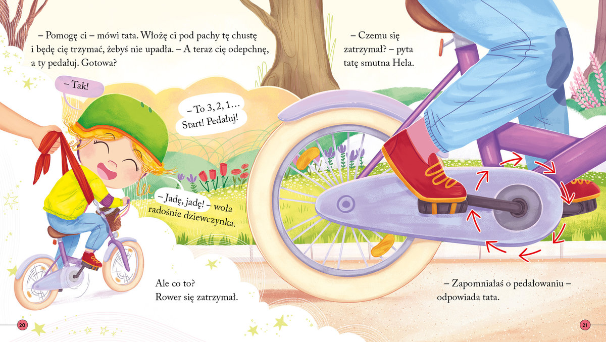 Hela marzy o rowerze… z pedałami. Pewnego dnia jej marzenie się spełnia – dziewczynka przesiada się z rowerka biegowego na prawdziwy rower. Jednak nauka jazdy nie jest prosta i nie ...