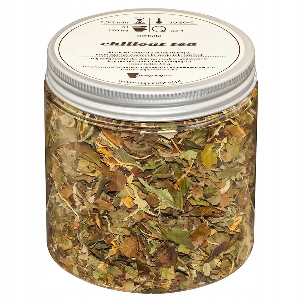 Herbata biała - CHILLOUT TEARelaksująca mieszanka, która łączy łagodność białej herbaty z owocową słodyczą mango i delikatną nutą czarnej porzeczki. Idealna na spokojne chwile, kiedy chcesz zwolnić i