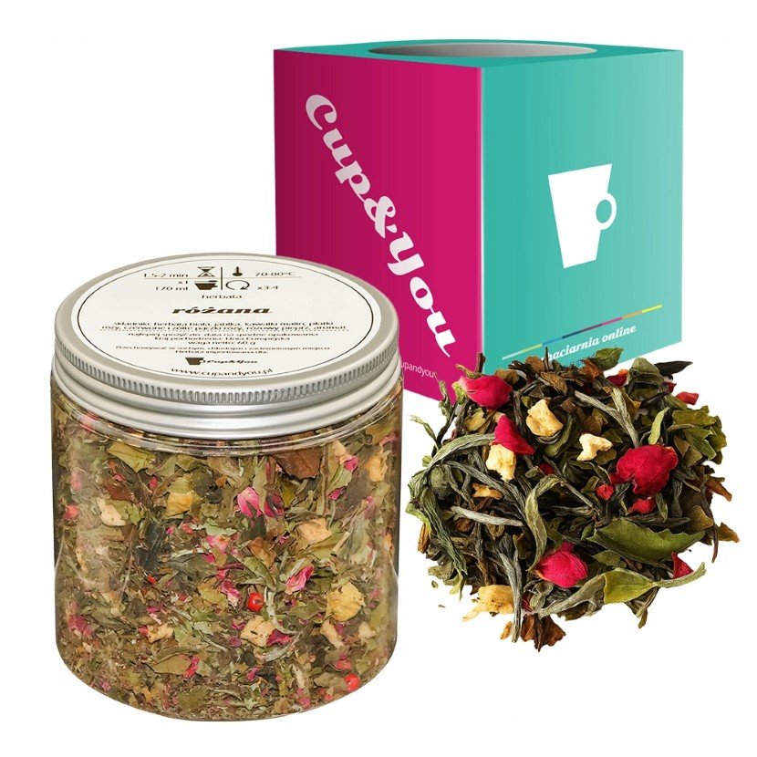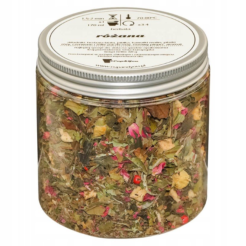 Nazwa: Herbata biała RÓŻANA jabłka maliny płatki i pączki róży różowy pieprz 60g - sypana liściasta herbata PREMIUM na prezent upominek Cup&You