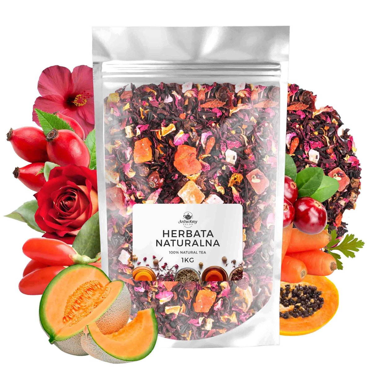 Herbata owocowa Paso Doble to wyjątkowa mieszanka, która zachwyca swoim smakiem oraz aromatem. W składzie znajdziemy starannie dobrane składniki, takie jak hibiskus, skórka róży, żurawina, papaja, melon kandyz, owoc goji, płatki róży oraz suszona marchewka, które tworzą harmonijną kompozycję. Ta owocowa herbata nie tylko orzeźwia, ale również dostarcza cennych wartości odżywczych. Doskonała zarówno na zimno, jak i na ciepło, idealna na każdą porę roku. Wybierz herbata owocowa Paso Doble i ciesz się niepowtarzalnym smakiem w każdej filiżance. Opakowanie 1 kg pozwala na długotrwałe delektowanie się tym wyjątkowym naparem.