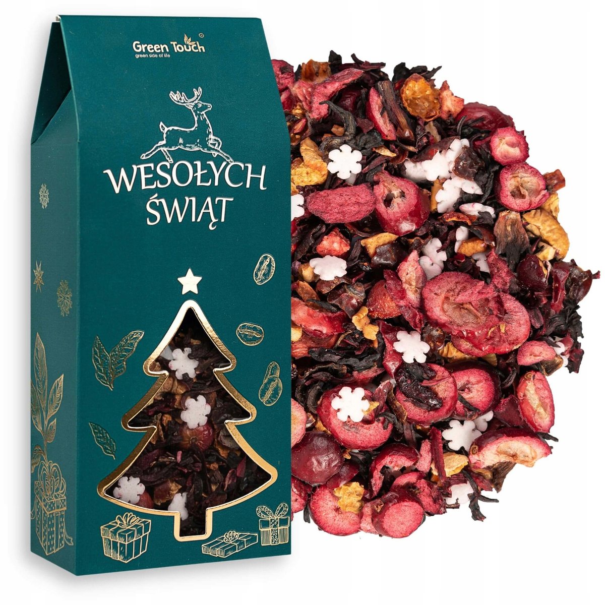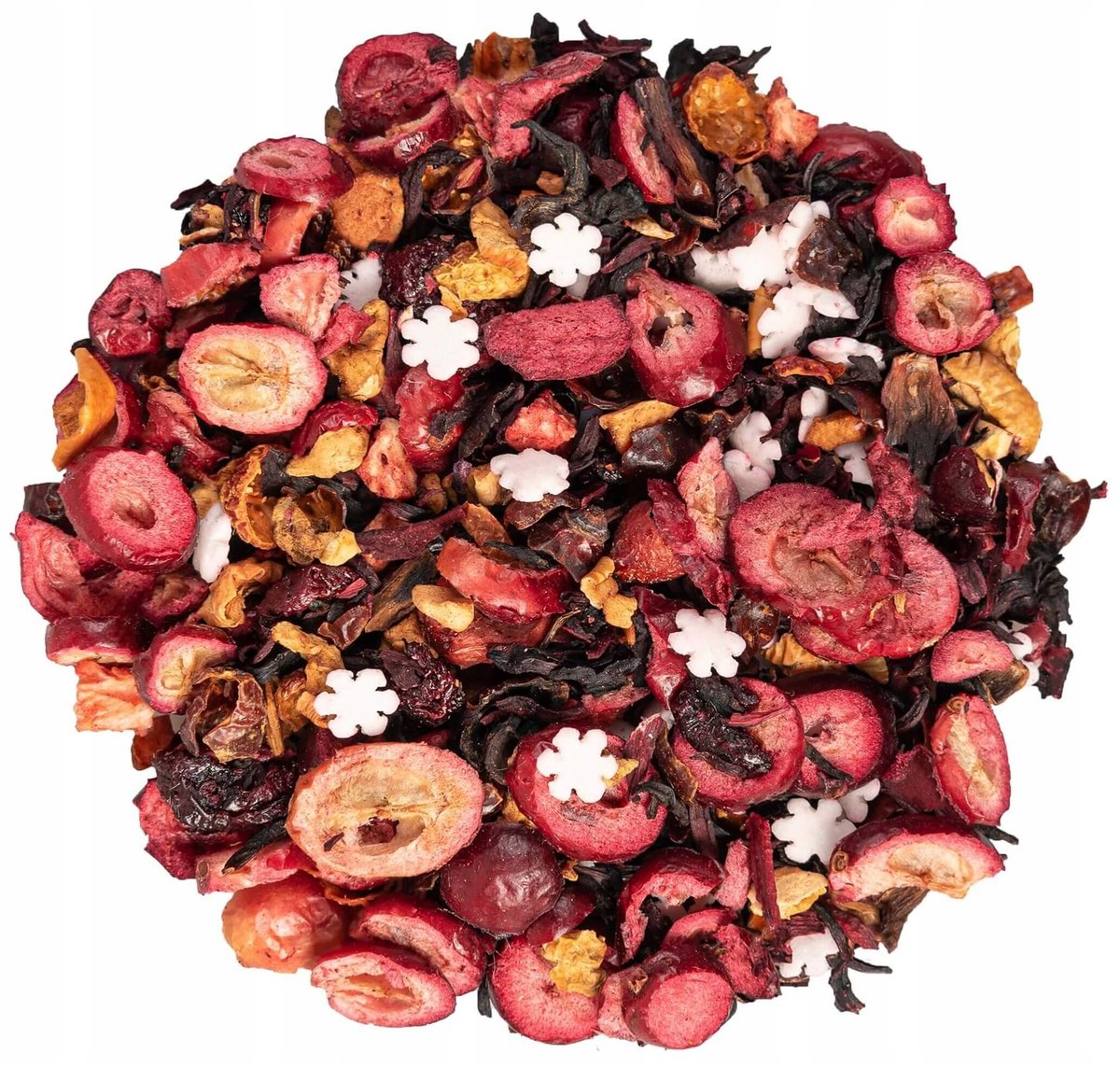 Ta wyjątkowa świąteczna herbata owocowa to esencja świątecznych smaków i aromatów. Słodko-kwasowaty hibiskus harmonijnie łączy się z nutami jabłka, żurawiny, truskawki i wiśni, tworząc soczystą i pełną smaku kompozycję. Dekoracje cukrowe oraz delikatna skórka róży dodają tej mieszance wyjątkowego, świątecznego charakteru, sprawiając, że jest ona idealna na chłodne, zimowe wieczory.