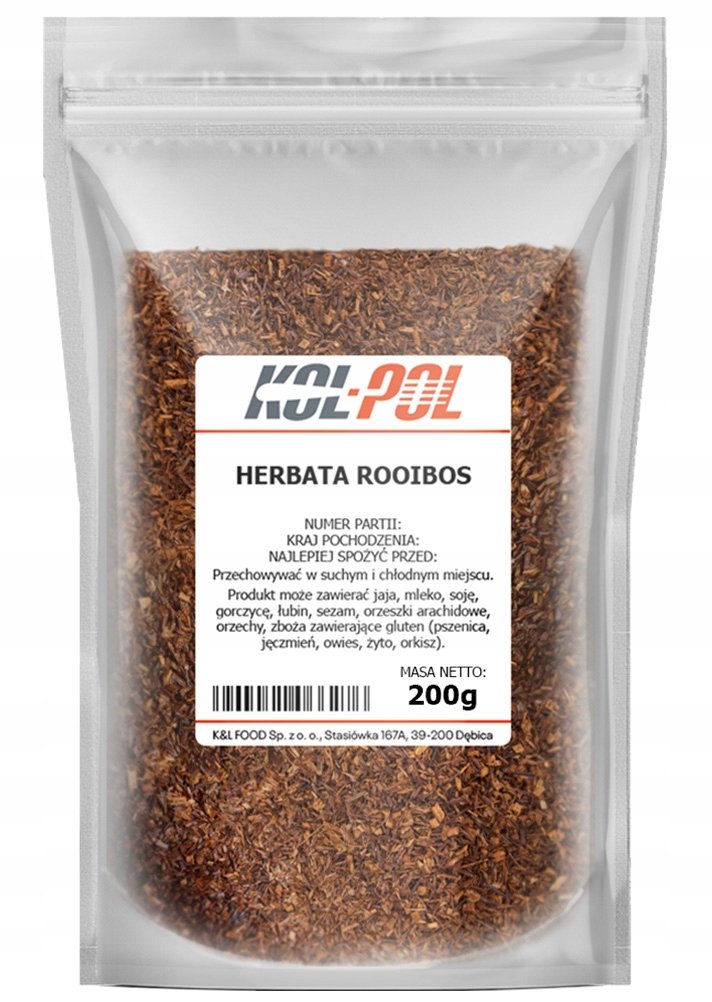 | Nazwa: | HERBATA ROOIBOS 200g Superior Bez kofeiny naturalna wysoka jakość Kol-Pol |