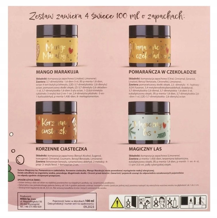| Nazwa: | HISKIN HOME ZESTAW ŚWIĄTECZNYCH ŚWIEC SOJOWYCH 4X100G |