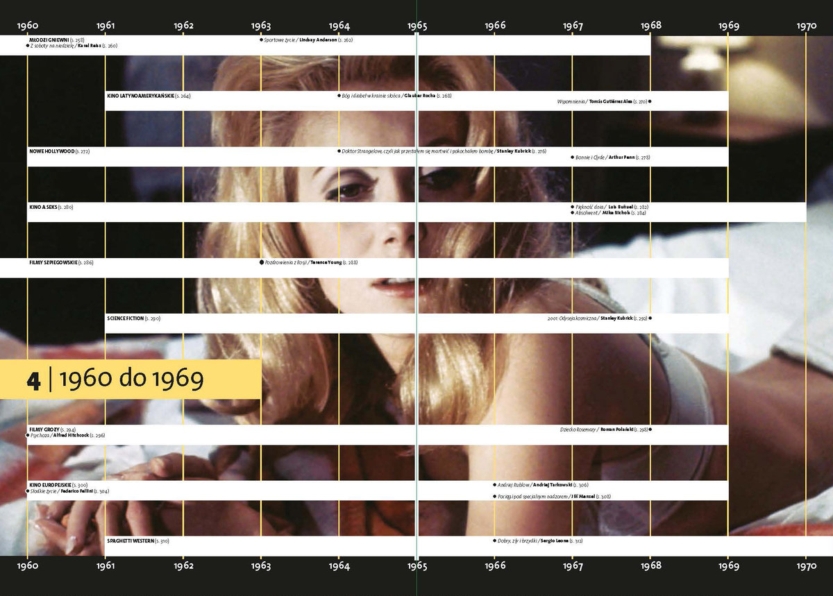 Niezbędna książka dla wszystkich, którzy kochają oglądać filmy i o nich czytać, a także dla tych, którzy chcą lepiej zrozumieć świat kina. Kluczowe dzieła są umieszczone w kontekście gatunku filmowego oraz na tle najważniejszych wydarzeń społecznych i kulturalnych. Kalendaria akcentują najważniejsze inspiracje i wydarzenia. Czytelnik wkracza w świat produkcji filmowej – pełen blasku, triumfów, dramatów i rozczarowań, a także poznaje realia życia gwiazd filmowych z całego świata.