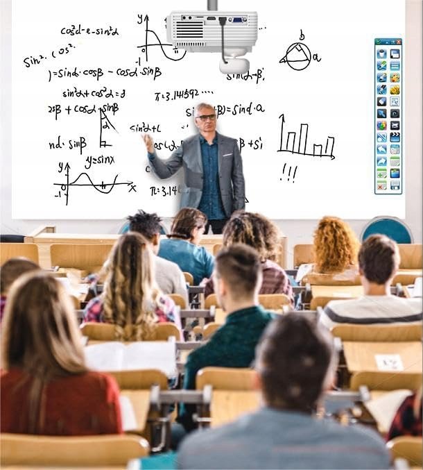 Przenośna interaktywna tablica do nauczania to nowoczesne, przenośne rozwiązanie, które pozwala zamienić każdą płaską powierzchnię – ścianę, tablicę lub ekran projekcyjny – w interaktywną tablicę. Dzięki dołączonemu interaktywnemu pióru oraz darmowemu oprogramowaniu E-NOTE, użytkownicy mogą rysować, pisać, prowadzić prezentacje i zdalnie sterować kursorem myszy bez potrzeby połączenia Wi-Fi. Idealne narzędzie do nauczania, prowadzenia spotkań, interaktywnych zajęć domowych oraz zabawy z rodziną.