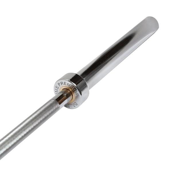 Gryf olimpijski GO700 HMS został wykonany ze specjalnej chromowanej stali, którą poddano procesowi hartowania. Produkt marki HMS cechuje wytrzymałość połączona z idealną elastycznością. W zestawie znajdują się dwa zaciski szczękowe. Pewny i wygodny chwyt gryfu zapewniono poprzez staranne radełkowanie. Maksymalne obciążenie wynosi 700 kilogramów. Z kolei średnica części chwytnej wynosząca 30 milimetrów zapewnia dużą wytrzymałość oraz komfort ćwiczenia. Zastosowany proces chromowania gryfu jest gwarancją zachowania jego wyglądu przez bardzo długi okres użytkowania oraz stanowi najlepsze zabezpieczenie przed rdzą. Gryf olimpijski GO700 HMS posiada 8 łożysk igiełkowych (po 4 na jedną stronę), które umożliwiają płynne obracanie się części na obciążenie. Jego konstrukcja eliminuje naprężenia na końcach wałeczków, w konsekwencji przekłada się na większą trwałość eksploatacyjną łożyska. Pomimo swojego małego przekroju poprzecznego, łożyska igiełkowe mają wysoką sztywność oraz nośność. Dwa zaciski szczękowe znajdujące się w zestawie, gwarantują stabilne położenie ciężaru na gryfie w czasie wykonywania ćwiczeń. Nasadki posiadają w części wewnętrznej gumowe elementy zapobiegające luzowaniu się obciążenia.