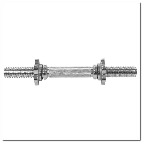 Gryf prosty - 35cm na zaciski gwiazdowe. Aby zapewnić pewne i wygodne trzymanie, część chwytna gryfu jest starannie radelkowana. W zestawie znajdują się dwa zaciski śrubowe. Zaciski tego typu gwarantują w czasie wykonywania ćwiczeń stabilne położenie ciężar na gryfie. Nakrętki posiadają w części wewnętrznej gumowe uszczelki, zapobiegające luzowaniu się obciążenia. Część gryfu jest gwintowana, co pozwala na szybkie i bezpieczne umieszczanie obciążenia. Gryf wykonywany jest z pełnego pręta stalowego, który poddany został procesowi hartowania. Średnica gryfu 30 milimetrów zapewnia dużą wytrzymałość oraz komfort ćwiczenia. Zastosowany proces chromowania gryfu jest gwarancją zachowania jego wyglądu przez bardzo długi okres użytkowania, oraz stanowi najlepsze zabezpieczenie przed rdzą.